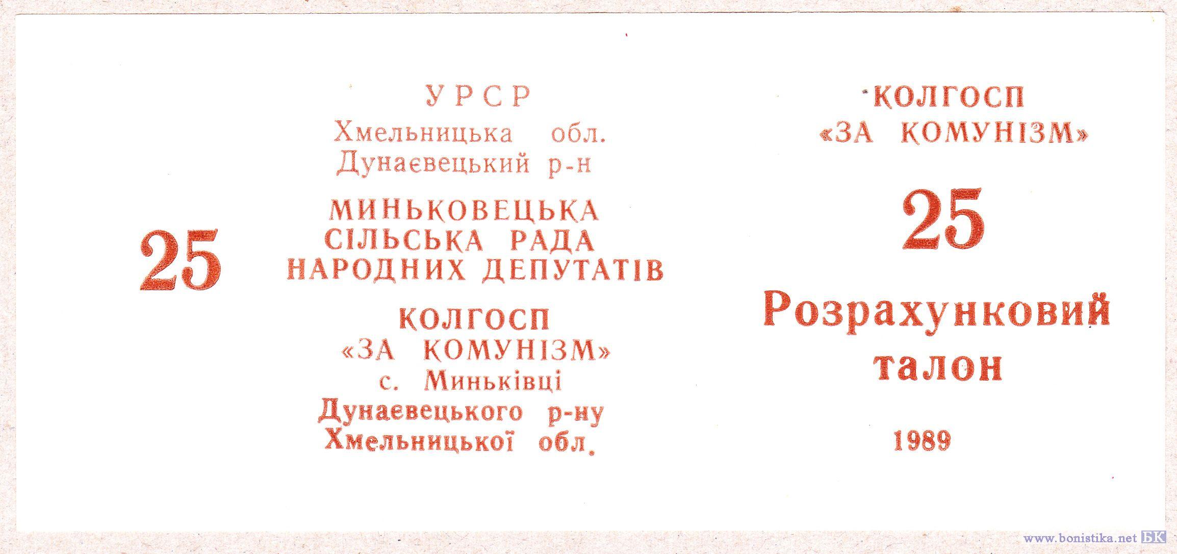 УССР, Хмельницкая обл., Дунаевецкий р-он, село Мынькивцы, колхоз «За коммунизм»
