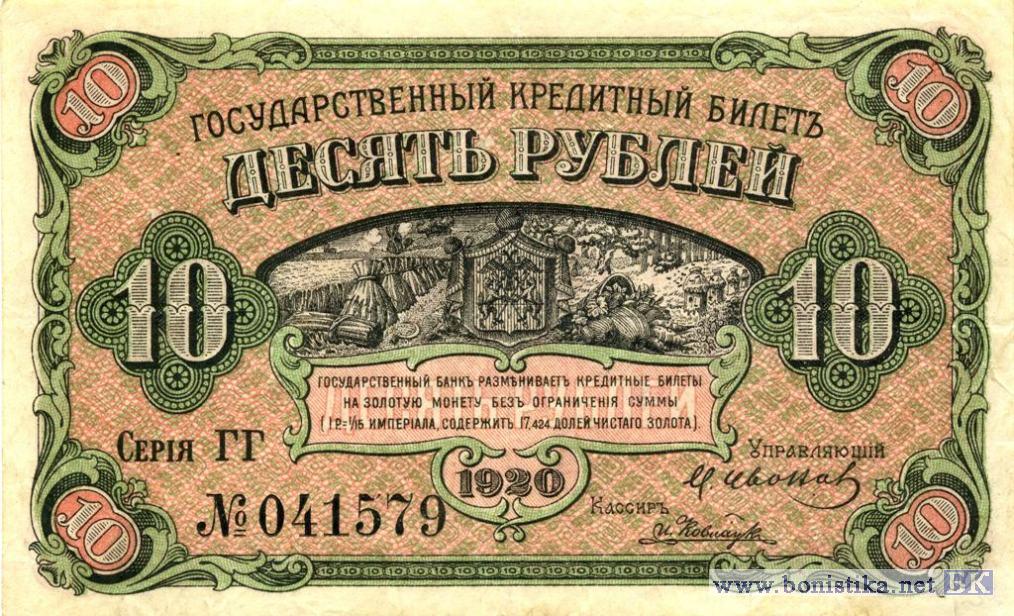 10 рублей Кредитный билет, 1920