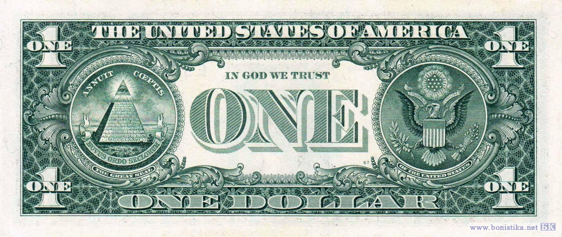 Первый президент Джордж Вашингтон, печать министерства финансов США. Оборотная и лицевая стороны большой государственной печати США.