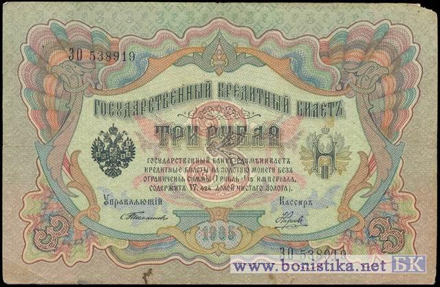 3 рубля 1905 года С.Тимашев-Наумов