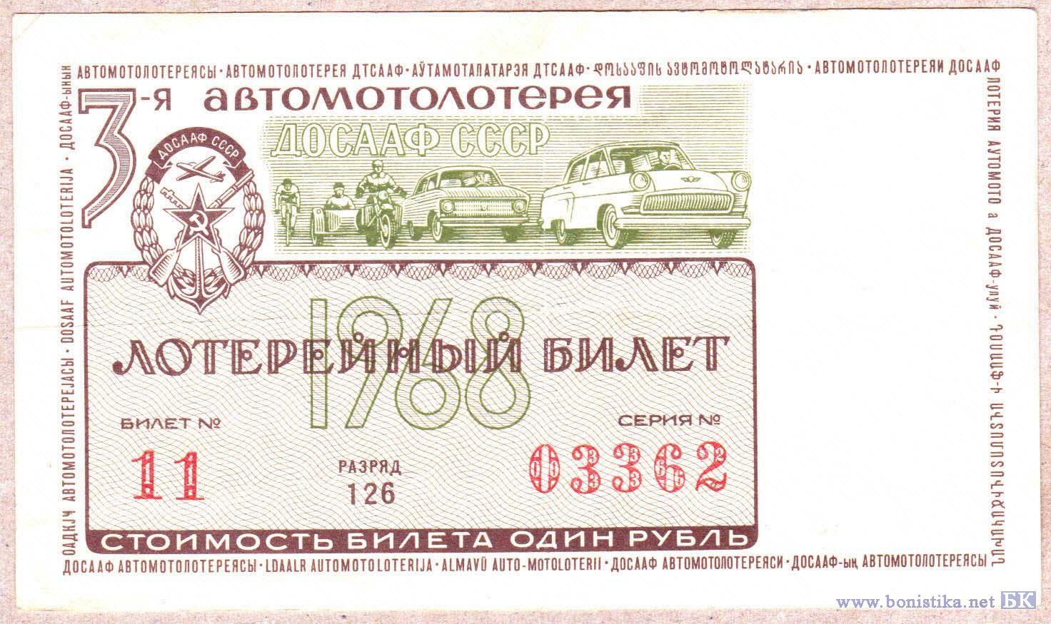 3-я автомотолотерея ДОСААФ СССР, 1968