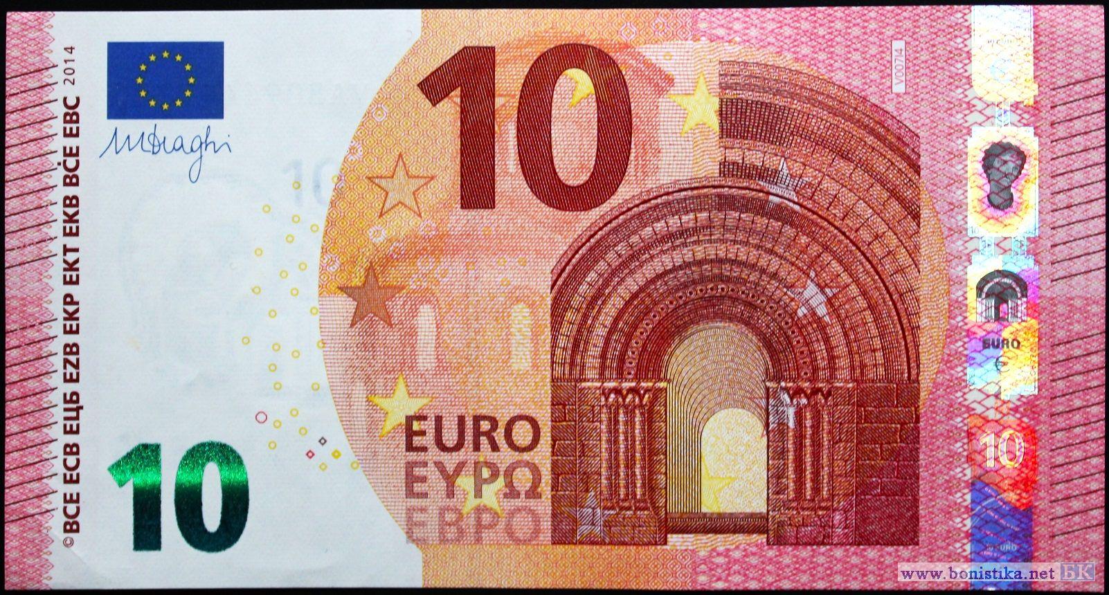 Вариант подписи: Mario Draghi. Принтер: (Fabrica Nacional de Moneda y Timbre). Арка. Мост.