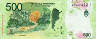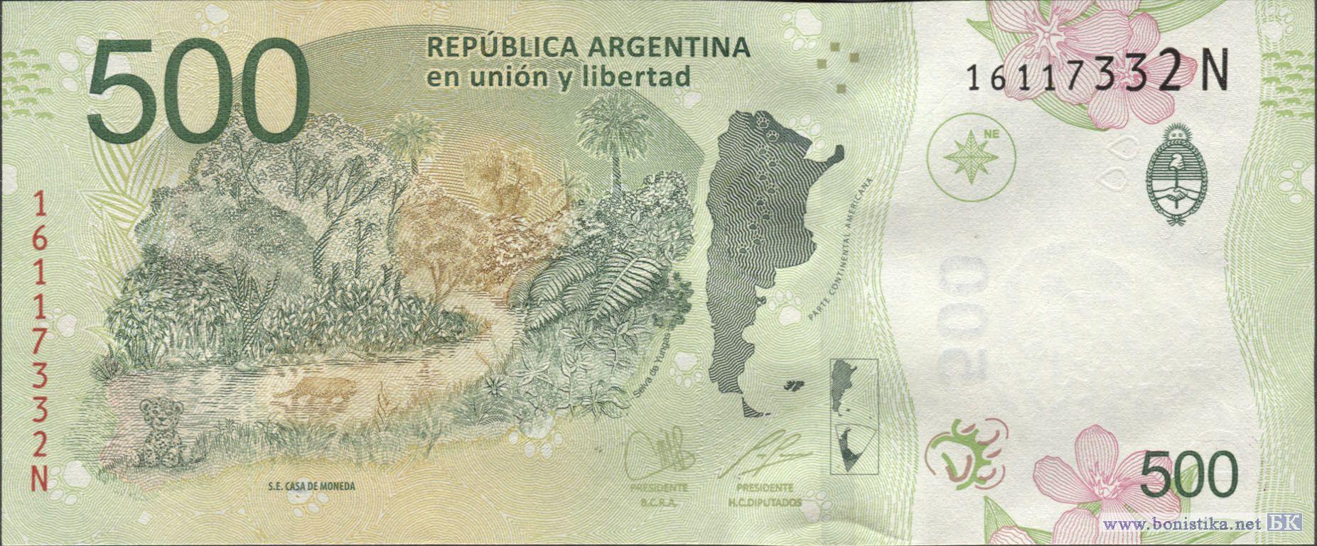 Банкнота из новой серии купюр Центрального банка Аргентины. Использован ряд новых средств защиты от подделок (в том числе оптически-изменяющие цвет чернила, деметализированная нить защиты, микропечать). Введена в обращение 30 июня 2016 года. Тираж отпечатан на Монетном дворе Аргентины (S.E. CASA DE MONEDA).