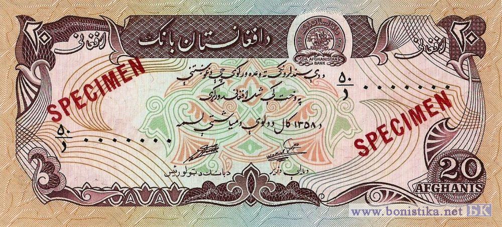 1979, 20 Afghanis specimen (образец)