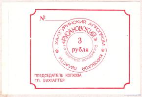 3 рубля. Халтуринский Агропром Русановского сельсовета,колхоз Русановский Кировская область