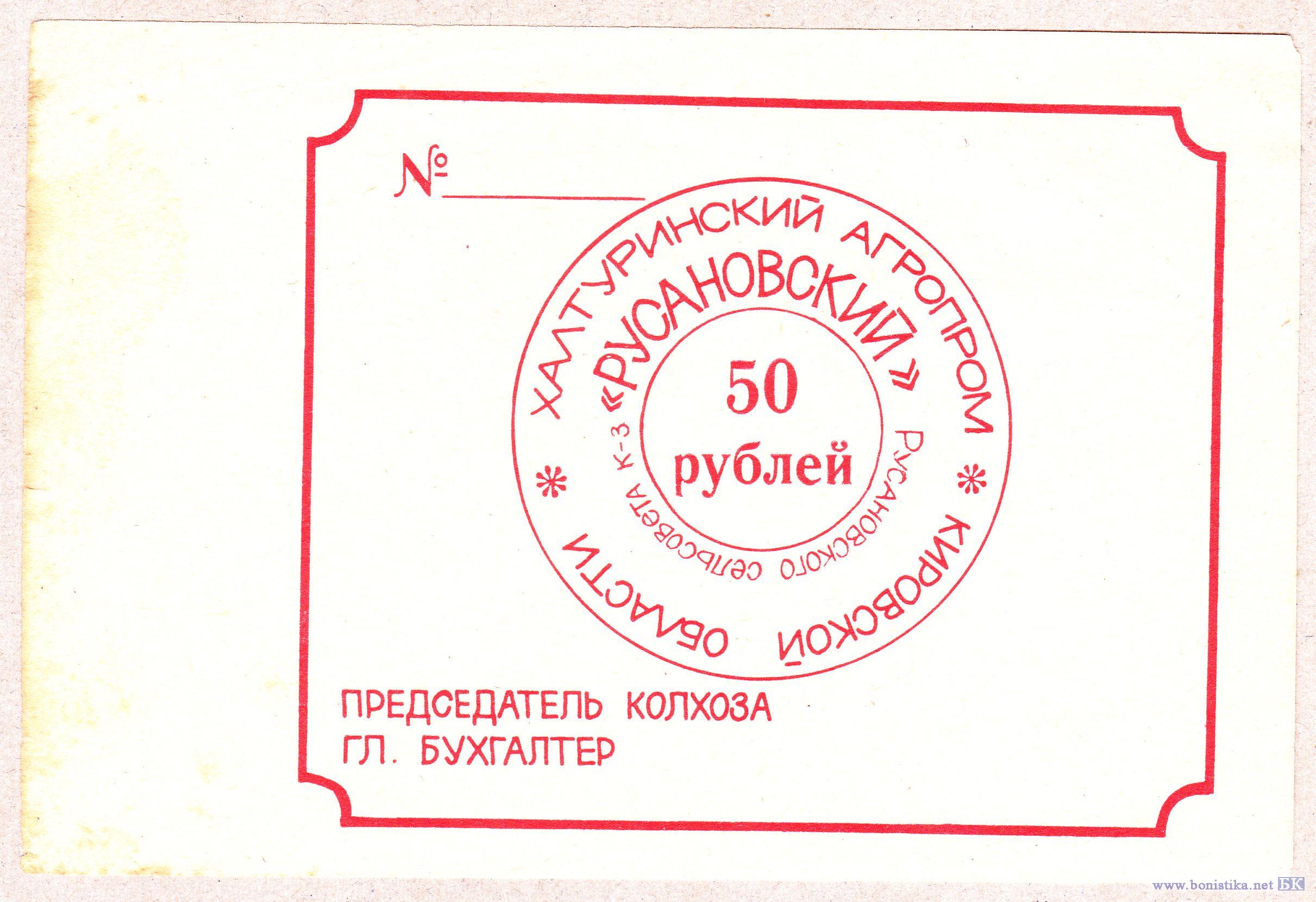 50 рублей. Халтуринский Агропром Русановского сельсовета,колхоз Русановский Кировская область