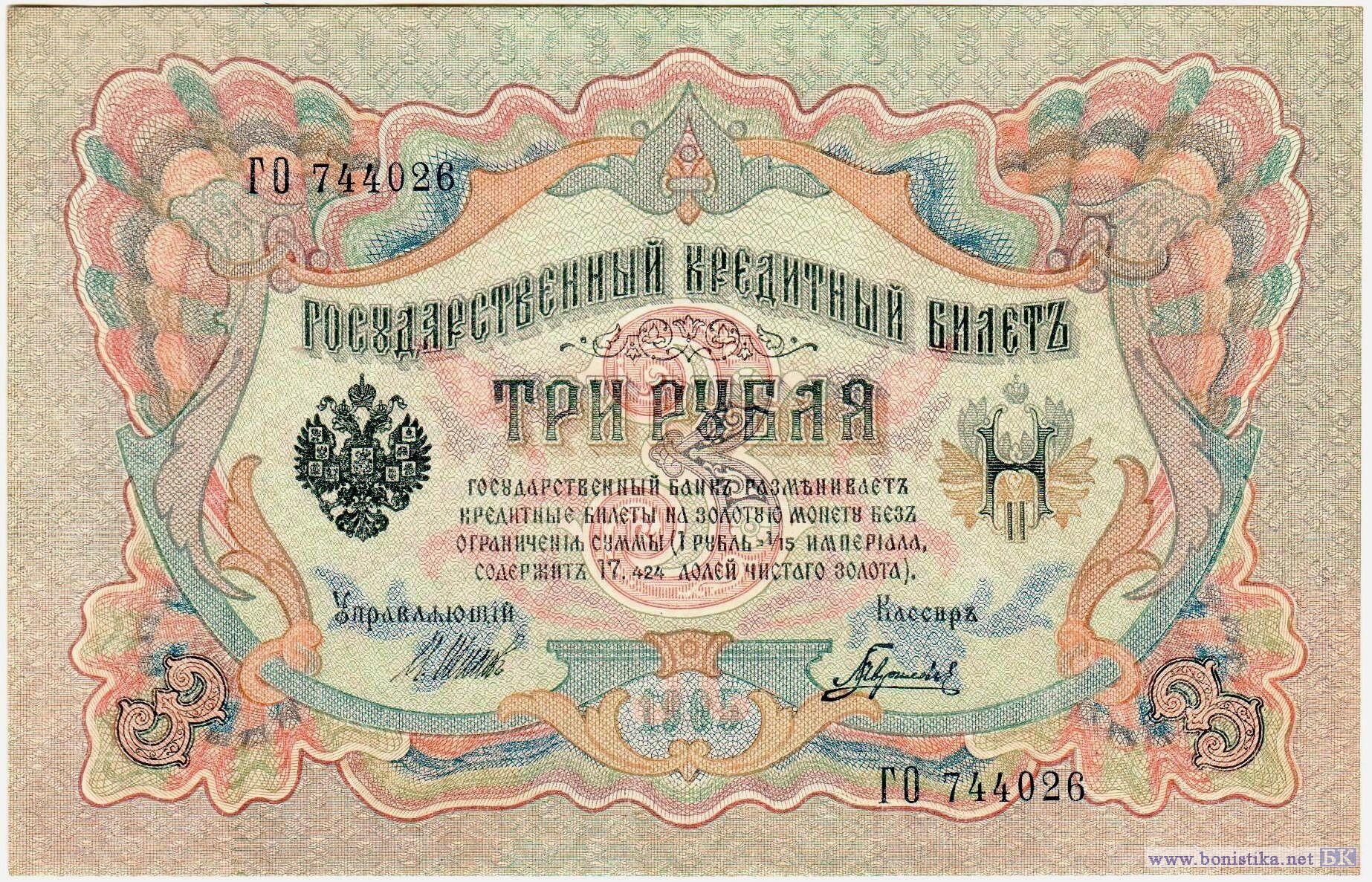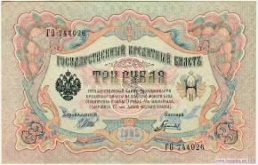 3 Рубля (Шипов- Гаврилов) ГО, 1905
