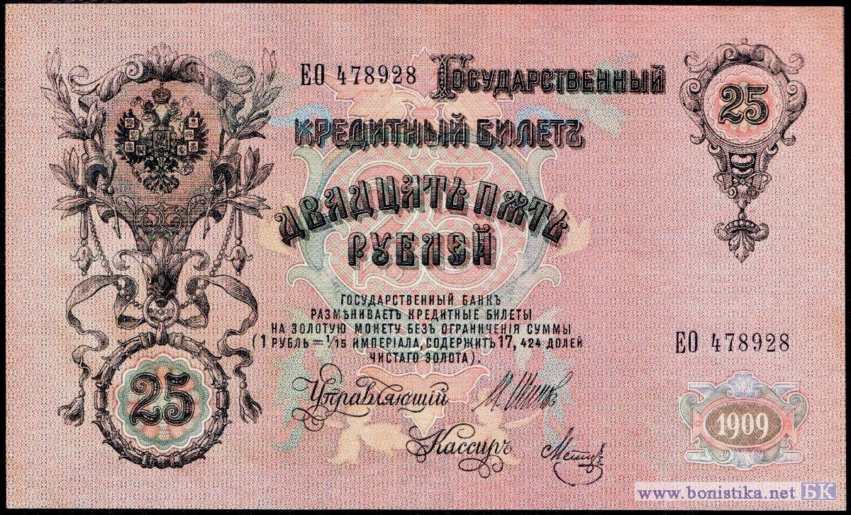 25 Рублей (Шипов-Метц) ЕО, 1909