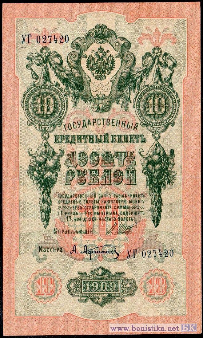 10 Рублей (Шипов-А.Афанасьев) УГ, 1909
