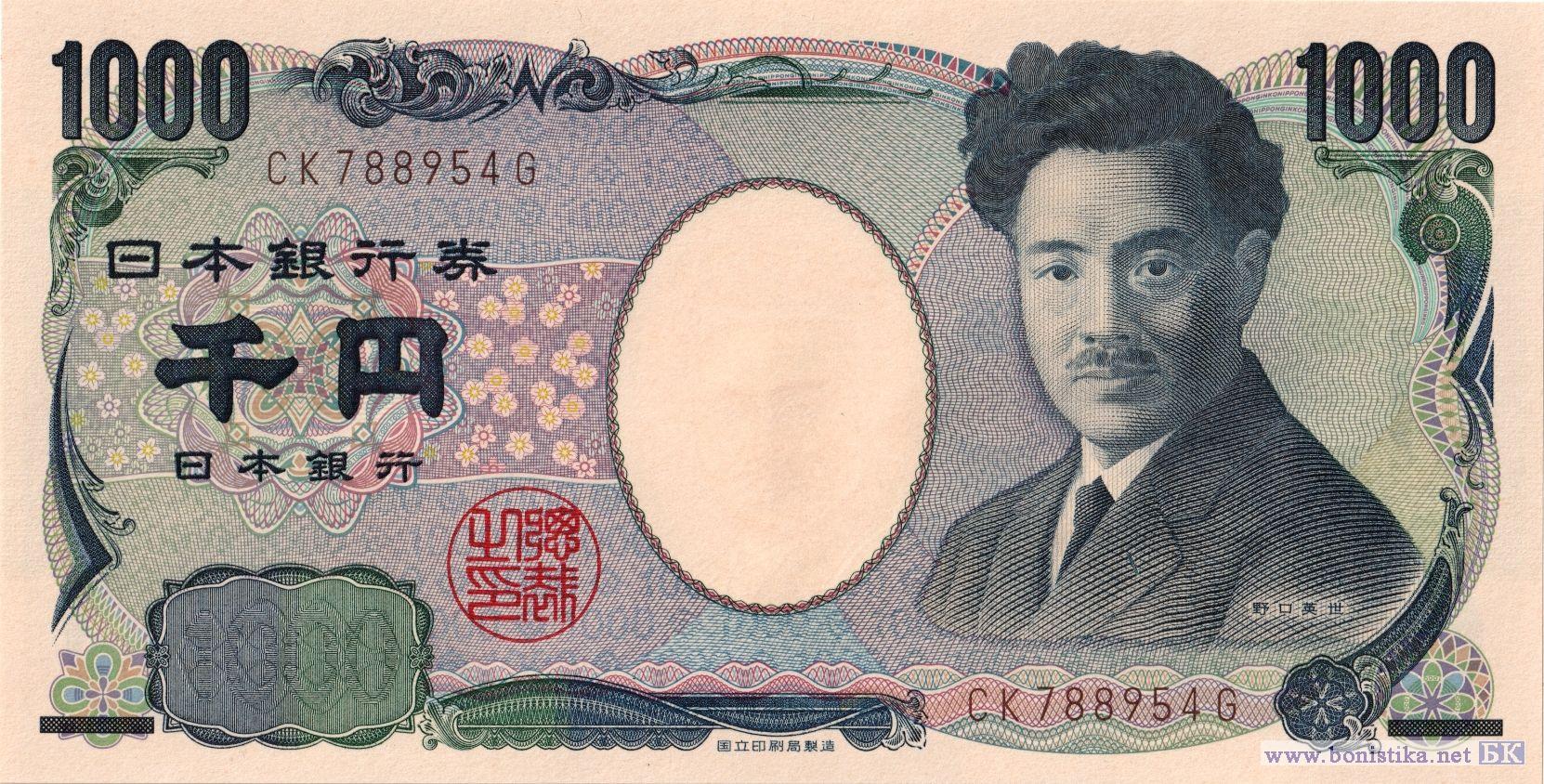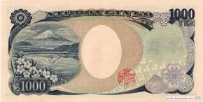 Тип c. Серийные номера коричневого цвета 2-го типа: Две буквы, шесть цифр и одна буква. Микробиолог, бактериолог Хидэё Ногути. Высочайшая вершина Японии, действующий стратовулкан Фудзияма (Фудзи) в Национальном парке Фудзи-Хаконе-Идзу на острове Хонсю, является священным объектом религиозного паломничества в буддизме и синтоизме, внесена в список объектов Всемирного наследия ЮНЕСКО, ветви с цветками сакуры или вишни мелкопильчатой (Prunus serrulata) - декоративного дерева семейства розовых.