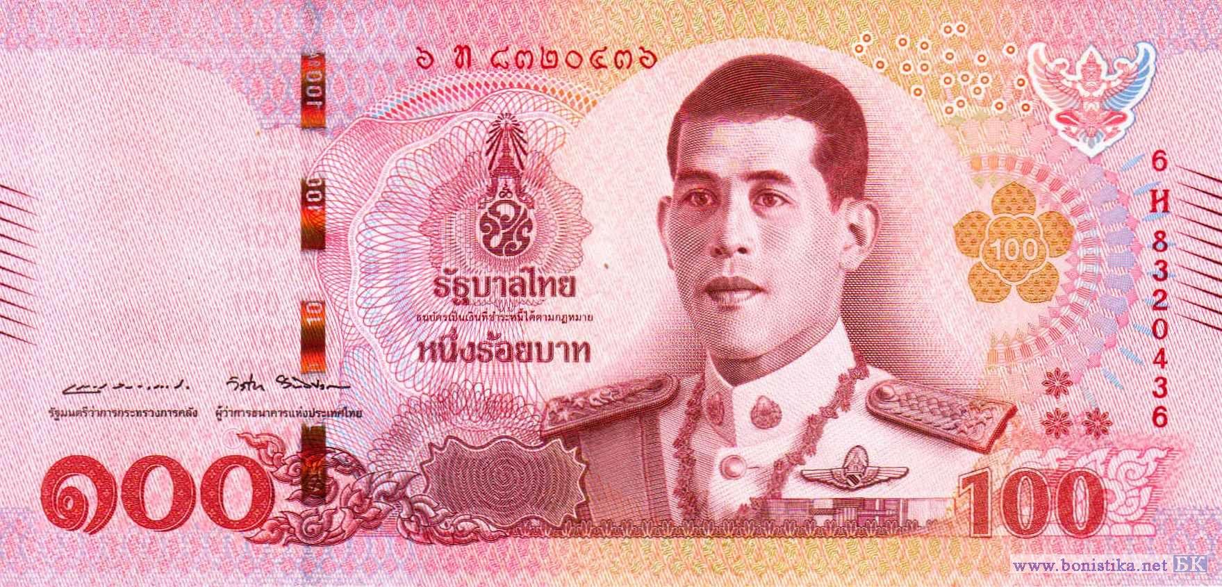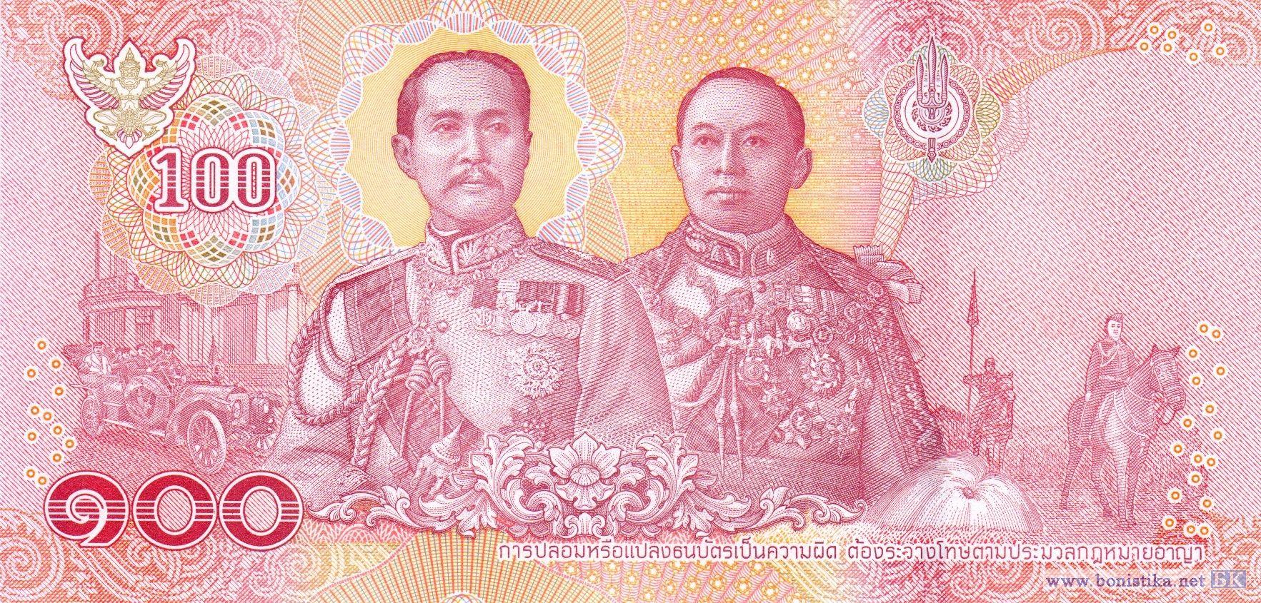 Тип b4. Вариант подписей № 90: Arkhom Termpittayapaisith - Sethaput Suthiwartnarueput. Короткий текст внизу на оборотной стороне: Наказание за изготовление поддельных банкнот - пожизненное лишение свободы или до двадцати лет лишения свободы и штраф до 40 000 бат. Принтер: NPW - Note Printing Works of the Bank of Thailand.