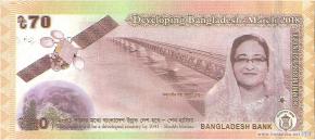 На оборотной стороне - портрет действующего премьер-министра Шейха Хасины,спутник Bangabandhu-1, мост Падма, который запланировано сдать к концу 2020 года.