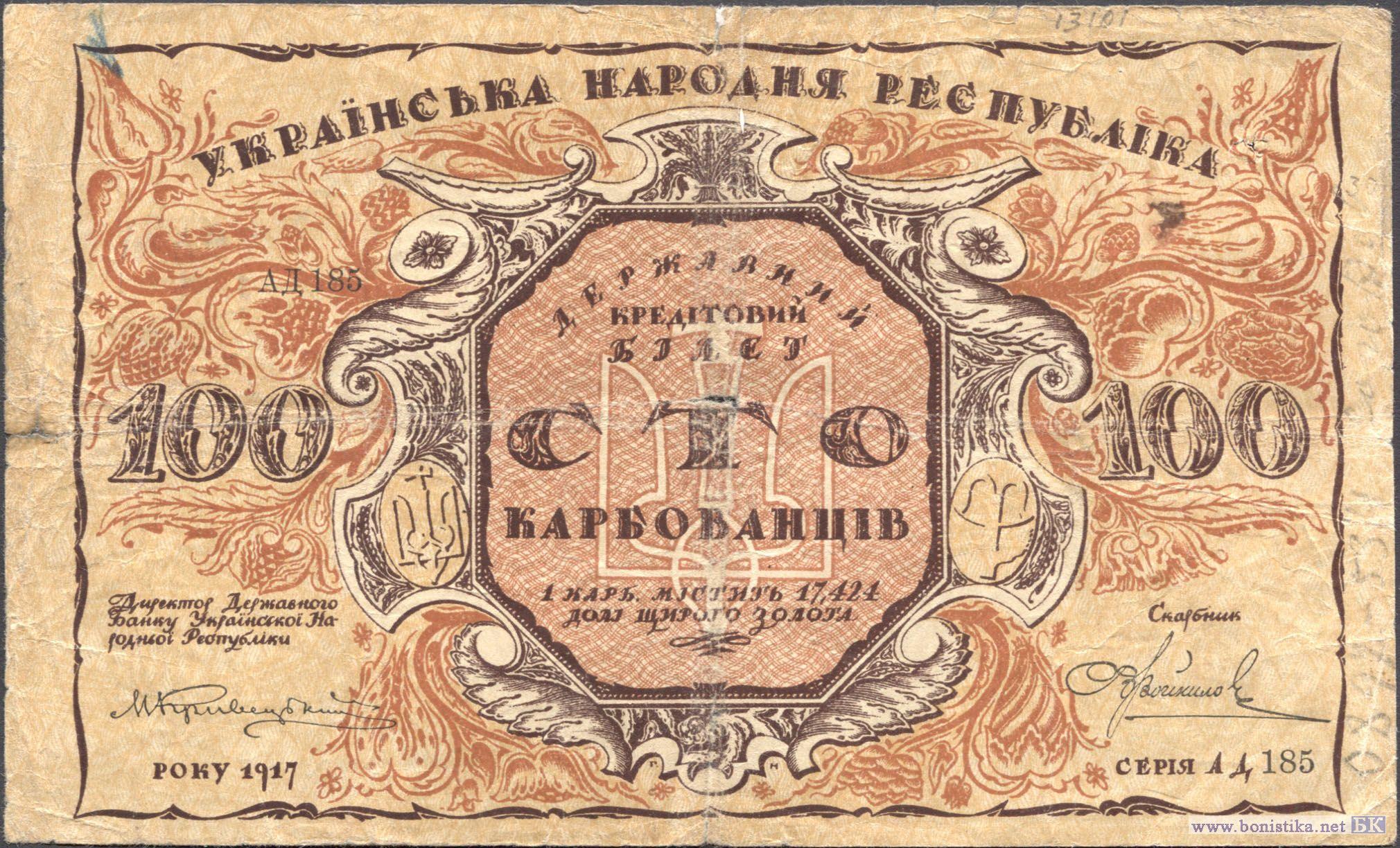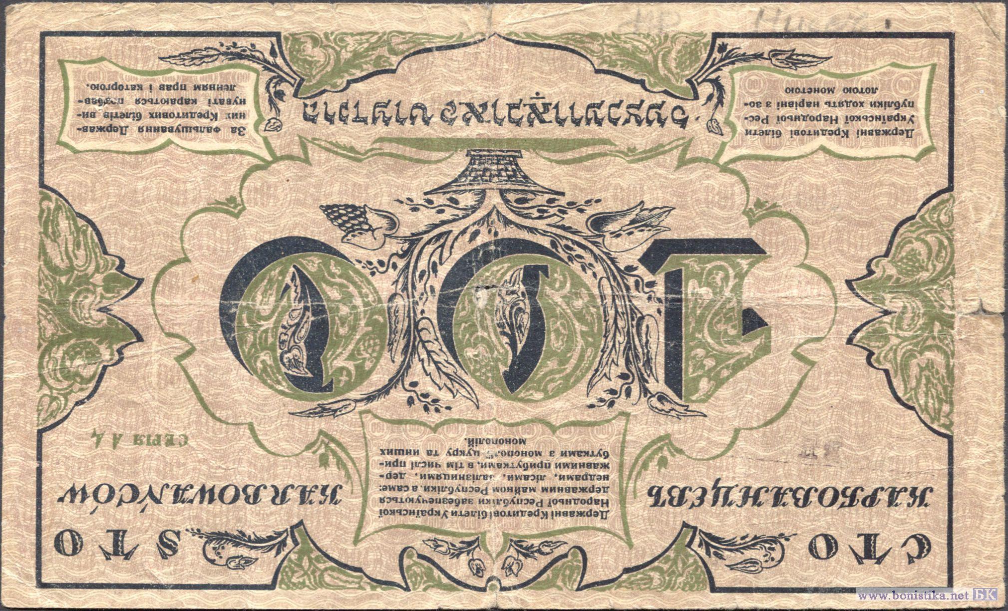 100 Карбованцiв (реверс не перевернут), 1917