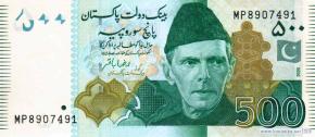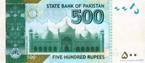 Лидер партии Мусульманская лига, первый генерал-губернатор Мухаммад Али Джинна. Эмблема государственного банка, мечеть Бадшахи (мечеть Падишаха) в городе Лахор в провинции Пенджаб.