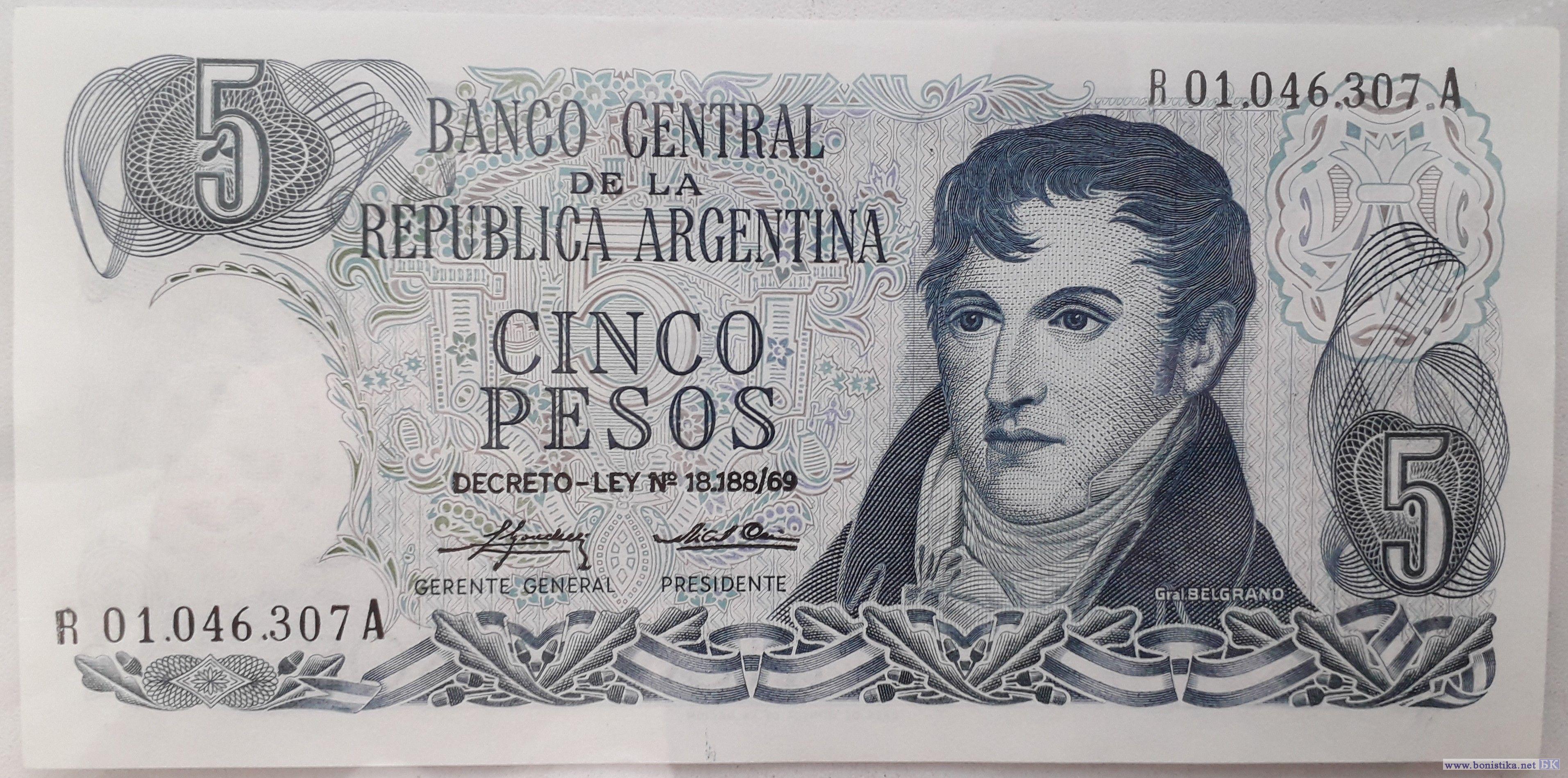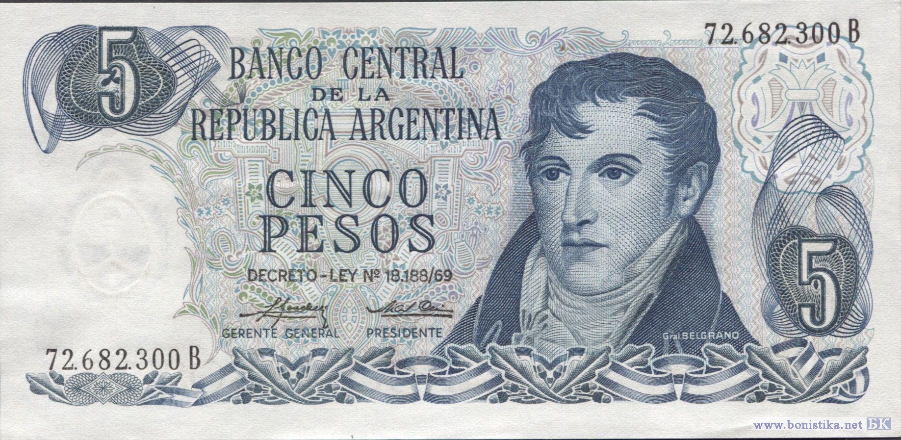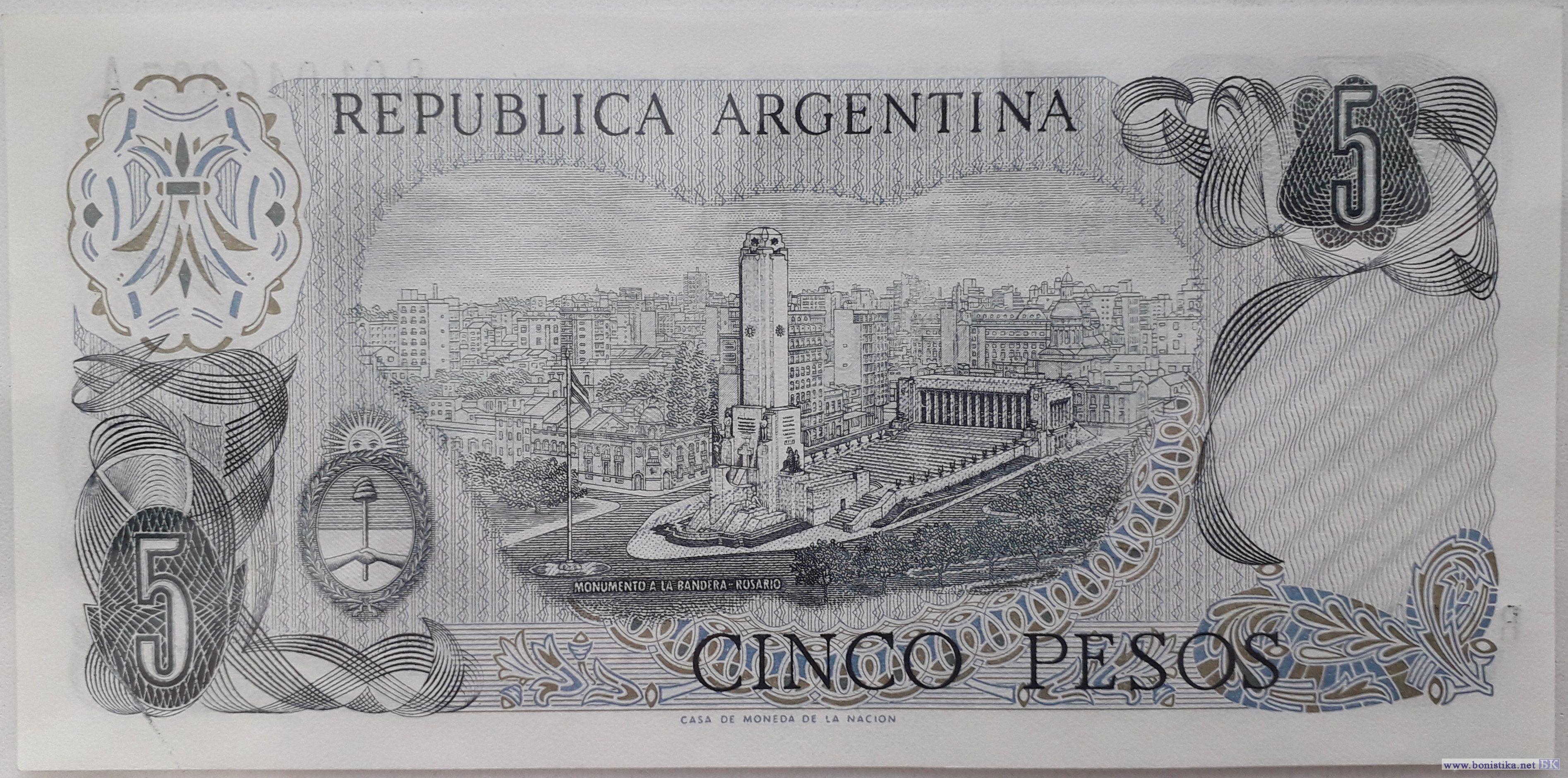 1974, 5 Pesos (замещение) (replacement)
