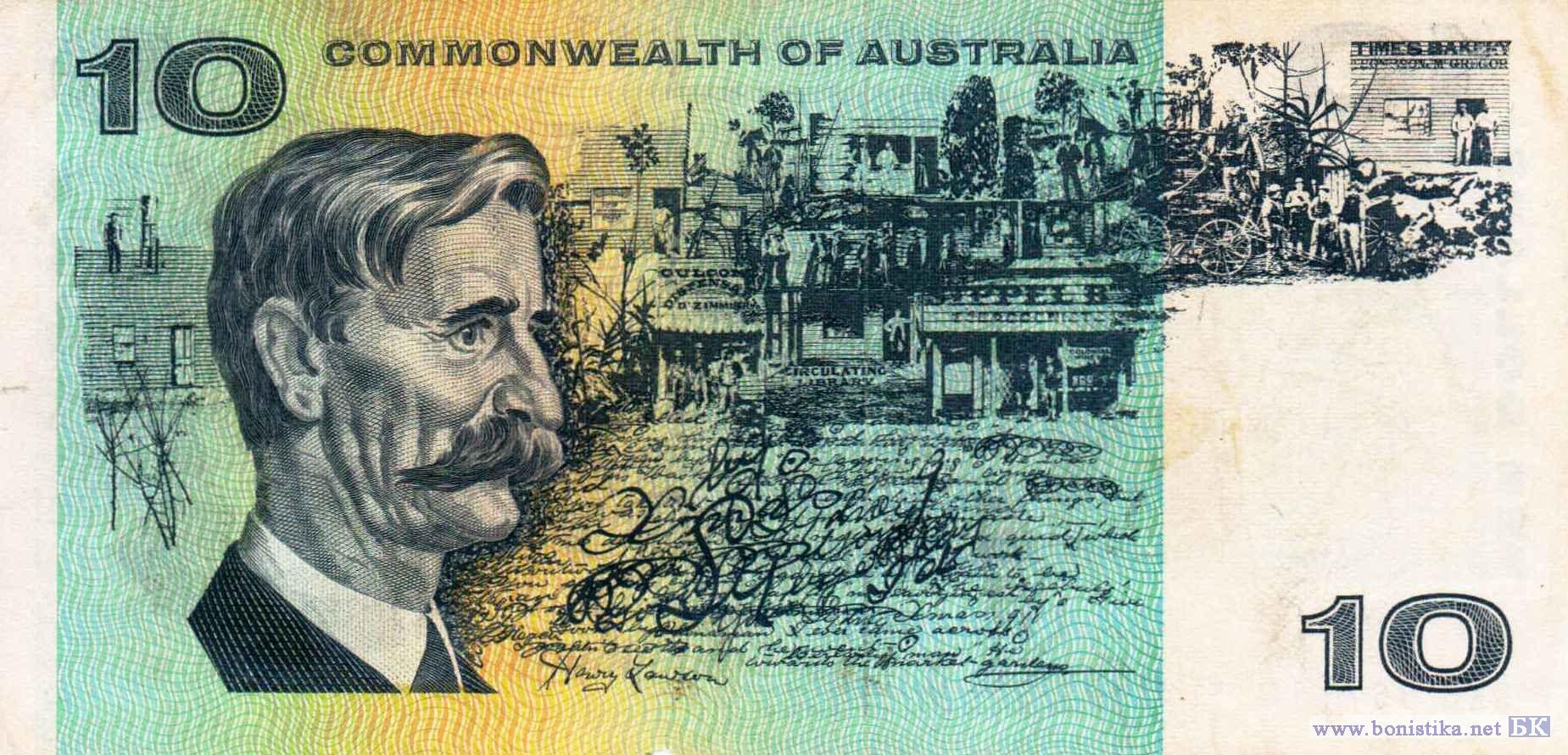 Коллаж из архитектурных элементов, архитектор Френсис Говард Гринуэй. Писатель Генри Арчибальд Херцберг Лоусон, коллаж из иллюстраций к произведениям писателя.