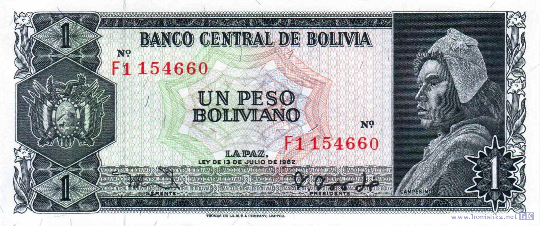 1 Peso Boliviano (тип a7), 1962