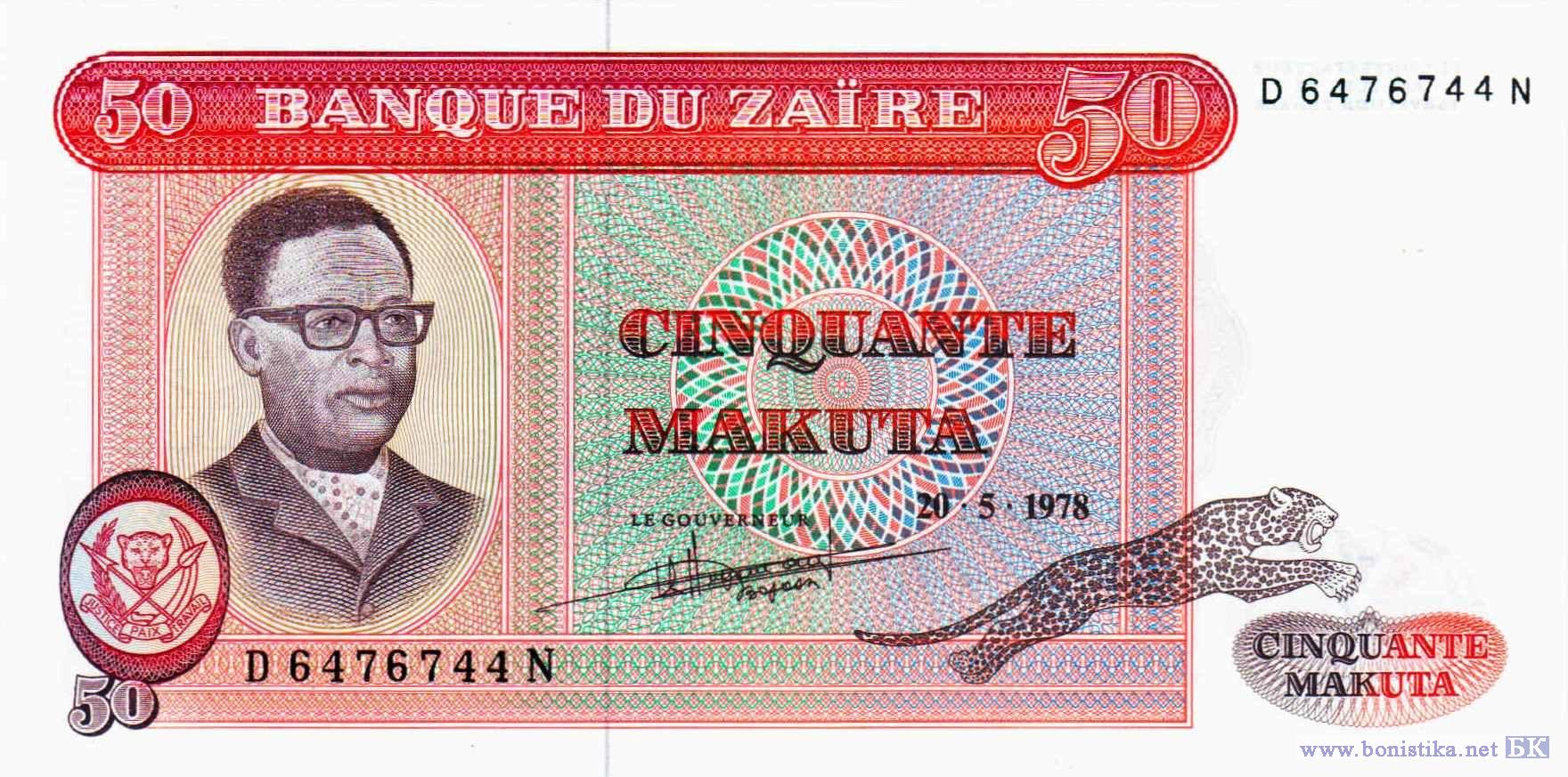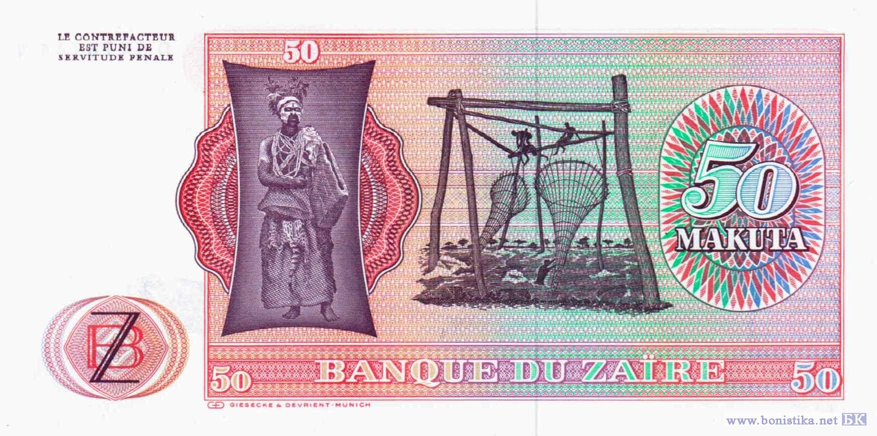Президент, маршал Мобуту Сесе Секо Куку Нгбенду ва за Банга (Жозеф-Дезире Мобуту), африканский леопард (Panthera pardus pardus) - хищное млекопитающее семейства кошачьих. Монограмма банка, шаман, сцена традиционной рыбной ловли на реке Конго (Заир).