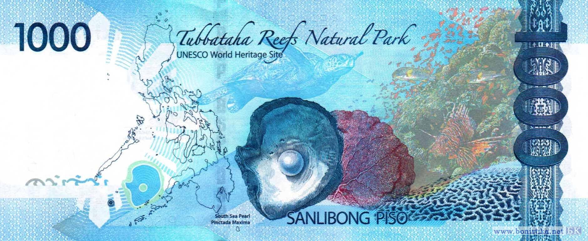 Группа участников празднования столетнего юбилея провозглашения Первой республики 12 июня 1998 года, национальные герои: главный судья Верховного суда Хосе Абад Сантос и Баско, расстрелян японскими оккупантами в 1942 году, один из основателей мужского скаутского движения, бригадный генерал Висенте Лим, захвачен в плен и казнён японскими оккупантами в 1944 году, защитница прав женщин, основательница женского скаутского движения Хосефа Льянес Эскода, казнена японскими оккупантами в 1945 году, орден Лакандула, эмблема Центрального банка. Карта Филиппин, раковины сереброгубых или белогубых устриц (Pinctada Maxima) с жемчужиной – двустворчатых моллюсков семейства настоящих морских жемчужниц, черепаха бисса или настоящая каретта (Eretmochelys imbricata) – позвоночное пресмыкающееся семейства морских черепах, рыбы, кораллы в морском природном парке риф Туббатаха в провинции Палаван, парк включён в список объектов Всемирного наследия ЮНЕСКО, рыба-крылатка, узор традиционной ткани т’налак народа т’боли с острова Минданао.