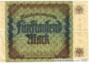 Возможны два варианта с литерой "S" по водяным знакам: 5000 Mark (a) - водяной знак - Hakensterne или 5000 Mark (f) - водяной знак - Wellen (волны).