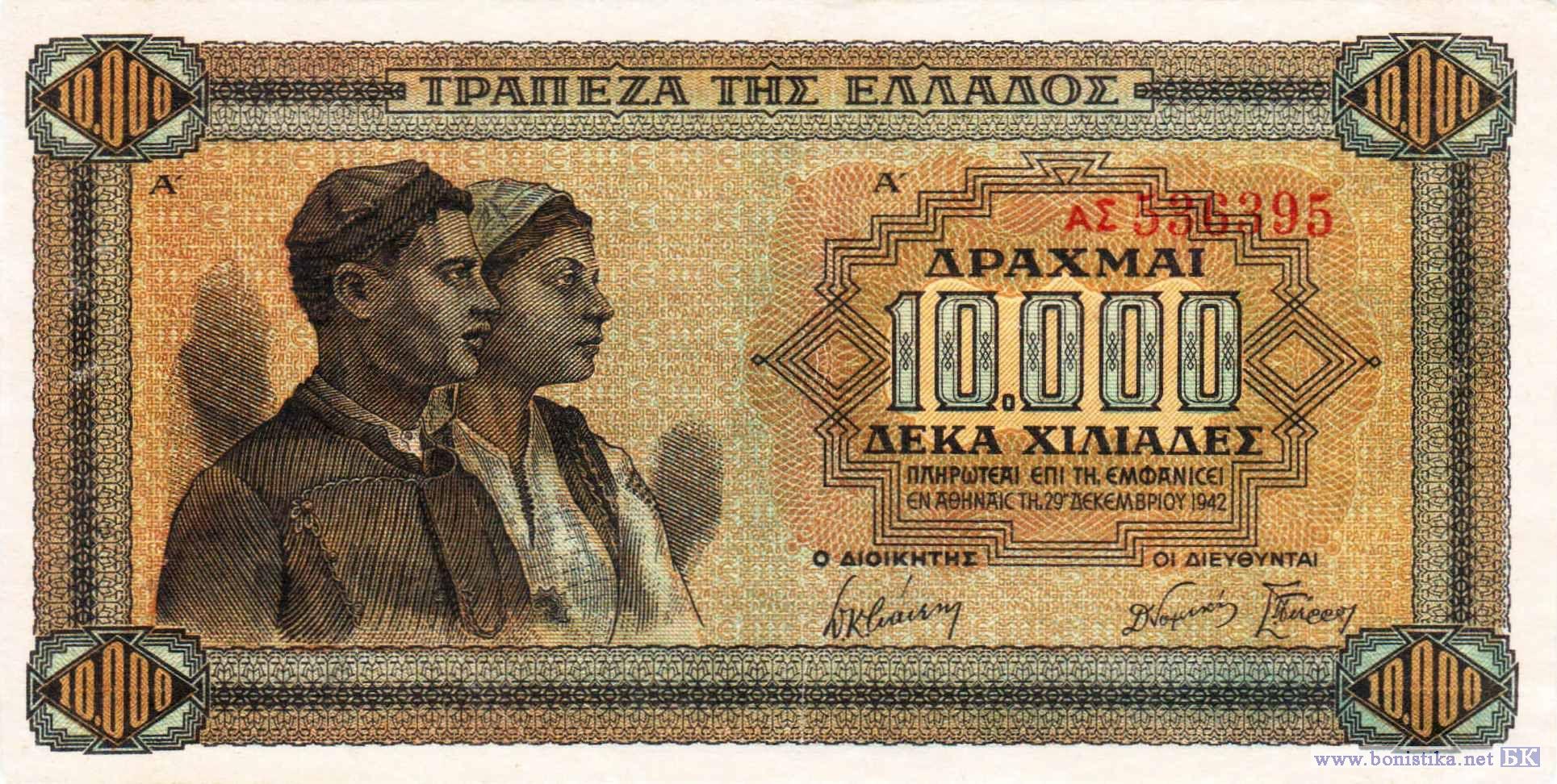 10000 Драхмаi (тип b), 1942