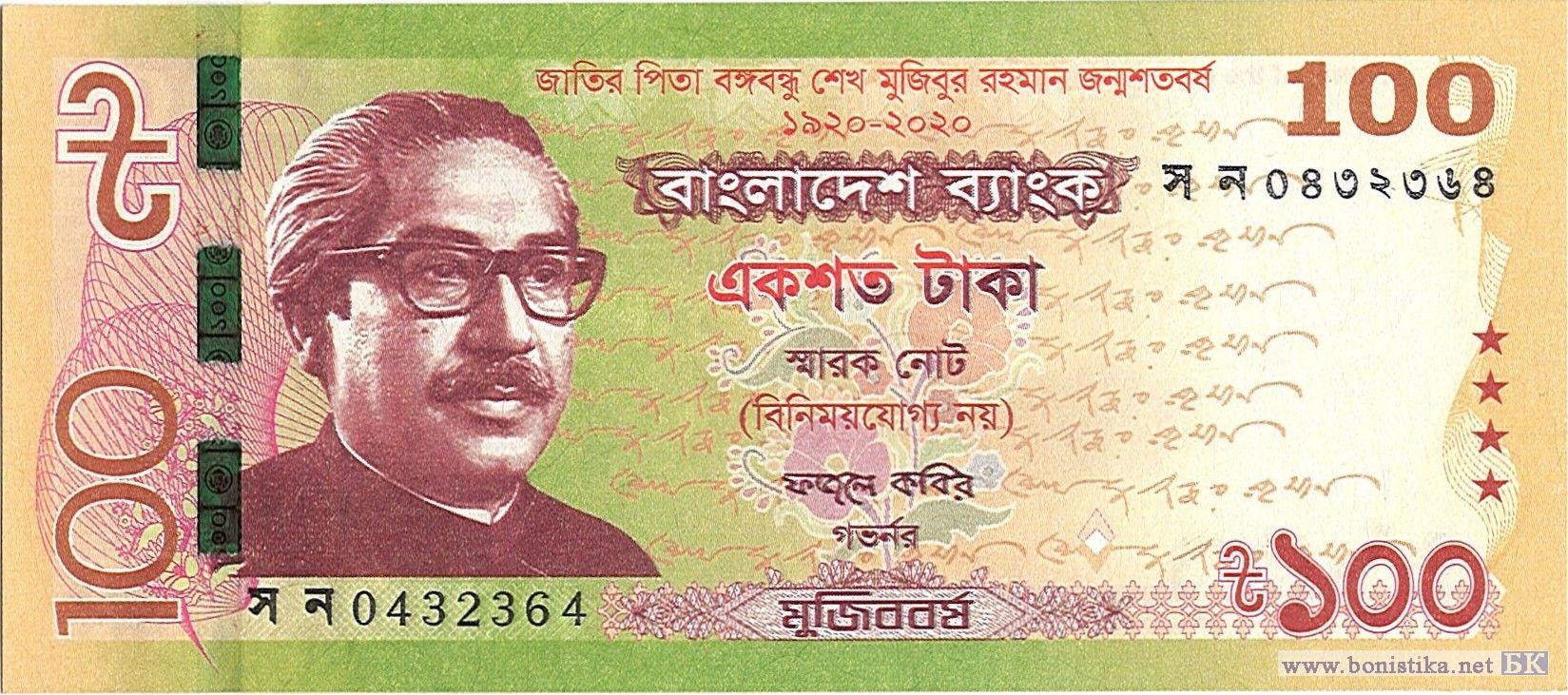 Памятная банкнота, выпущенная в ознаменование 100-летнего юбилея "Отца Нации" Шейха Маджибура Рахмана