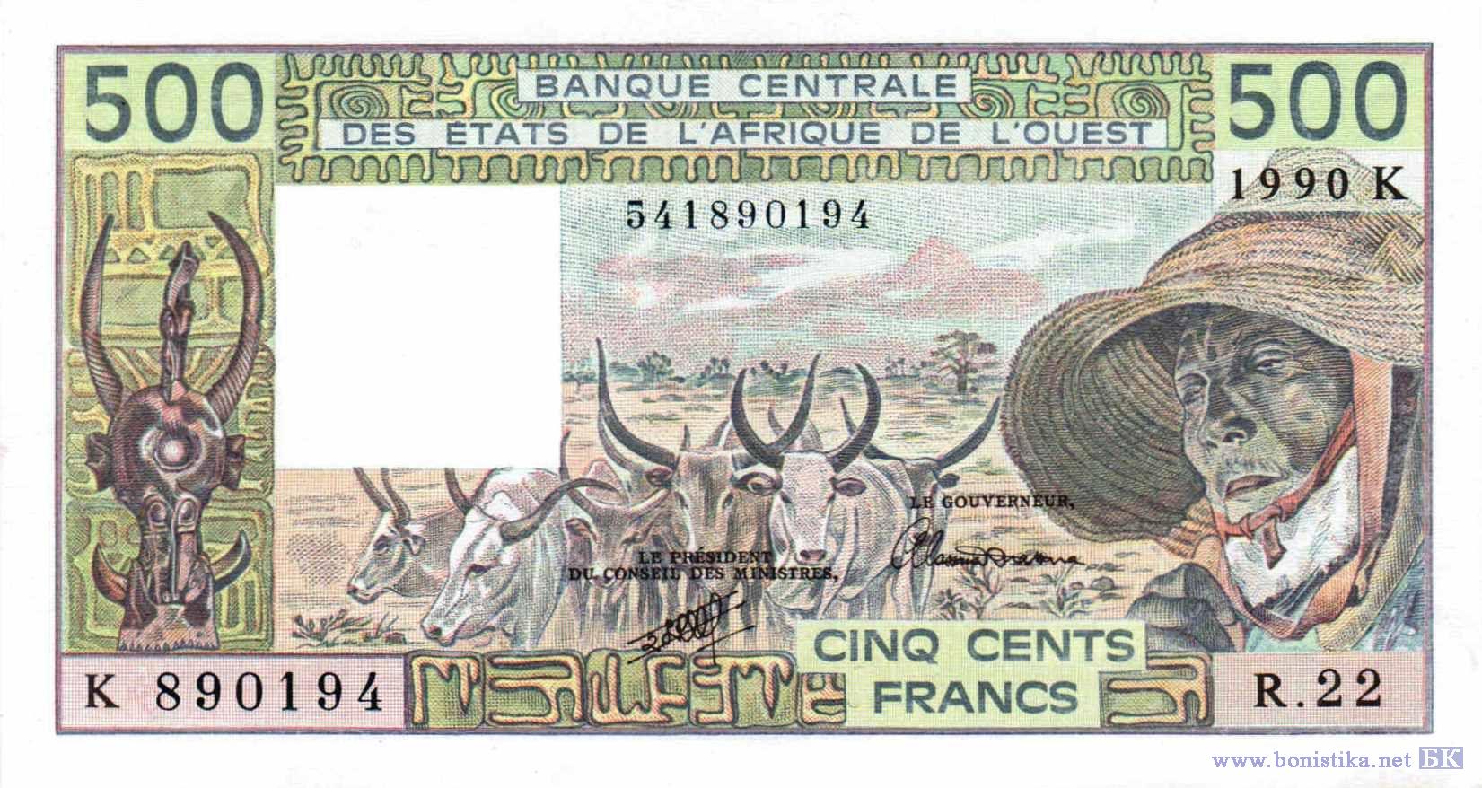 Тип l. Литера К - выпуск для Сенегала. Вариант подписей № 22: Idelphonse Lemon - Alassane Ouattara.