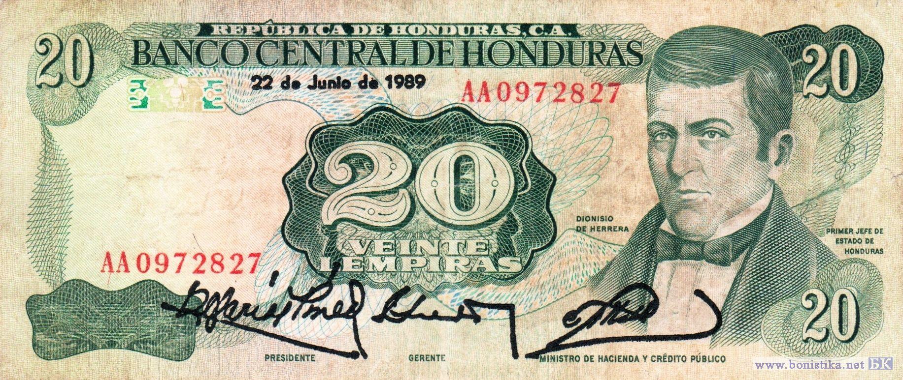 Тип с1. Дата отпечатана горизонтально. Вариант подписей № 19: Gonzalo Carias Pineda - Rigoberto Pineda Santos - Carlos Falck Contreras.
