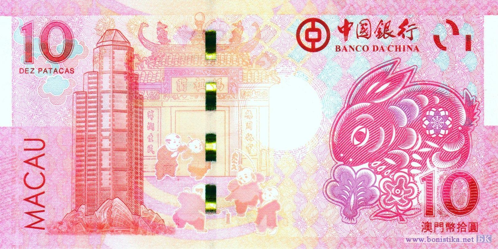 Стилизованное изображение кролика и цветов – четвёртого знака китайского зодиака. Здание Банка Китая в городе Аомынь, дети с фейерверком перед воротами даосского храма А-Ма на холме Барра в честь богини Мацзу – покровительницы мореходов, кролик, цветы.