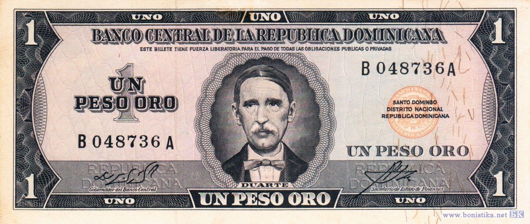 Национальный герой, глава борьбы за независимость Хуан Пабло Дуарте, печать Центрального банка. Барельеф с изображением аллегории свободы. герб.