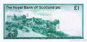 Старый герб Королевского банка Шотландии. Эдинбургский замок на Замковой скале в городе Эдинбург, деревья.