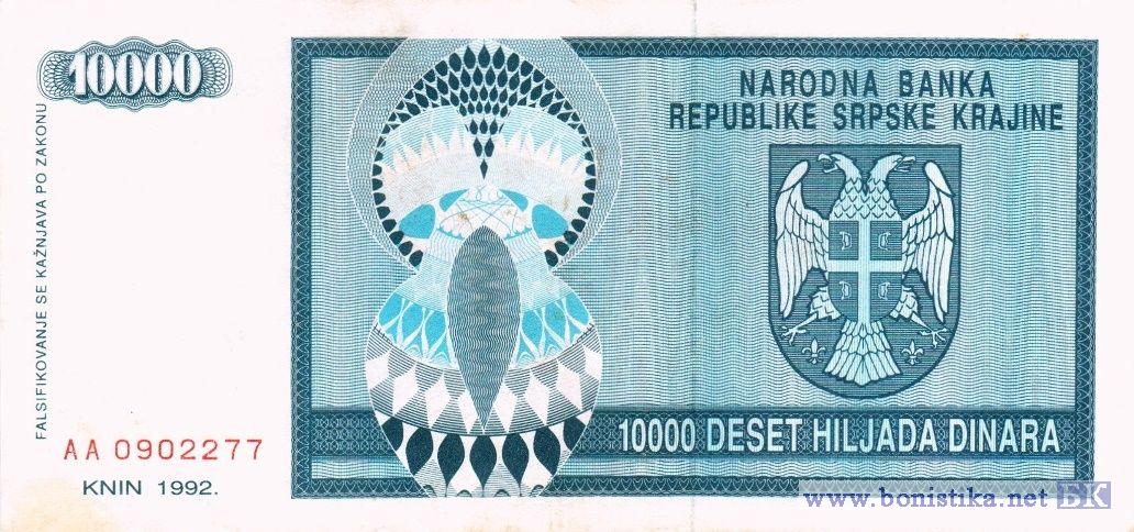 10000 Динара (тип а), 1992