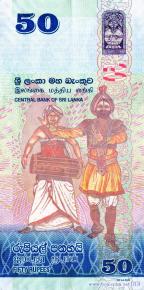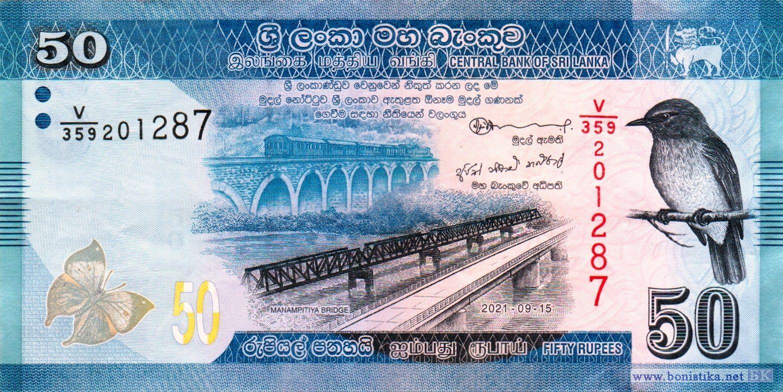 Каллима филарх, или бабочка-листовидка, или цейлонский синий дубовый лист (Kallima philarchus) – членистоногое насекомое семейства нимфалид, пассажирский поезд на старом девятиарочном мосту Демодара в городе Готувела в провинции Ува, старый и новый мост Манампития через реку Махавели в районе Полоннарува, однотонная лазурная мухоловка (Eumyias sordidus) – эндемичная воробьинообразная птица семейства мухоловковых. Фрагмент сингальского цветочного орнамента лия вела, каменный барельеф с изображением пункаласы (ритуального сосуда изобилия) – символа процветания, фрагмент карты острова Шри-Ланка, музыкант с барабаном як берая, танцор исполняющий танец вадига патуна.