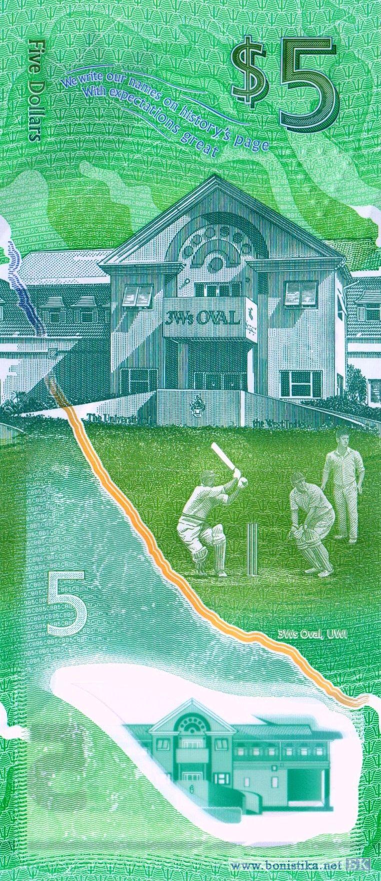 Стилизованные изображения верхних частей трезубцев древнегреческого бога морей и водных потоков Посейдона – символы принципа правления на Барбадосе, состоящего из трёх формул: «из народа, с народом, для народа», игрок в крикет, сенатор, сэр Фрэнк Уорелл, здание спортивного комплекса «Три дабл ю Овал». Фрагмент здания спортивного комплекса «Три дабл ю Овал» для игры в крикет в кампусе Кэйв Хилл университета Вест-Индии близ города Бриджтаун, фрагмент очертания береговой линии острова Барбадос, игроки в крикет.