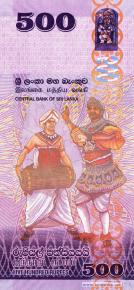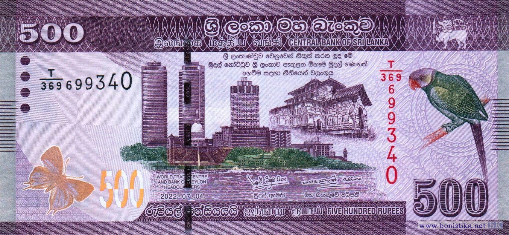 Цейлонская королевская индиговая бабочка (Tajuria arida) – членистоногое насекомое семейства голубянок, является эндемиком острова Шри-Ланка, деревья, здания небоскрёбы Всемирного торгового центра и головного офиса Банка Цейлона на площади Эчелон в городе Коломбо, древний буддийский храм Ланкатилака Вихарая в городе Канди, изумрудный кольчатый попугай (Psittacula calthropae) – птица семейства попугаевых, является эндемиком острова Шри-Ланка. Фрагмент сингальского цветочного орнамента двитва лия вела, защитный камень падманидхи с изображением яксы или бахиравы (гнома) защищающего богатства бога Куверы, фрагмент карты острова Шри-Ланка, музыкант с барабаном як берая, танцовщик, исполняющий танец телме нетума.