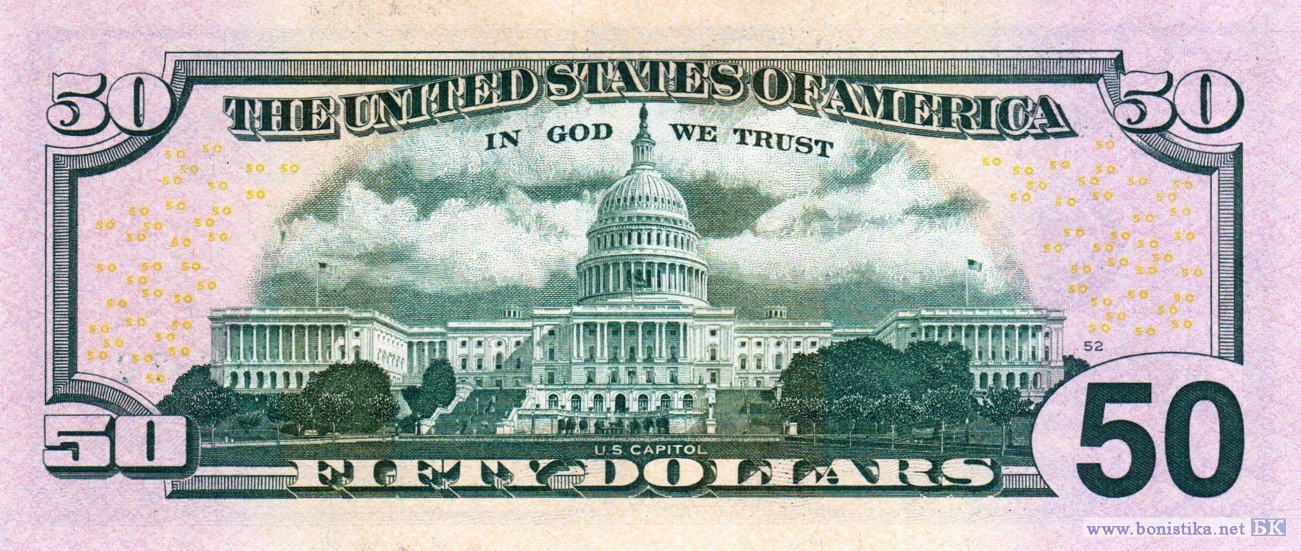 Фрагменты флага США, командующий Армией Союза во время Гражданской войны 1861 – 1865 годов, генерал армии, член Американского философского общества, создатель Департамента юстиции, президент Улисс Симпсон Грант, печать министерства финансов США. Деревья, здание Капитолия в городе Вашингтон в округе Колумбия.