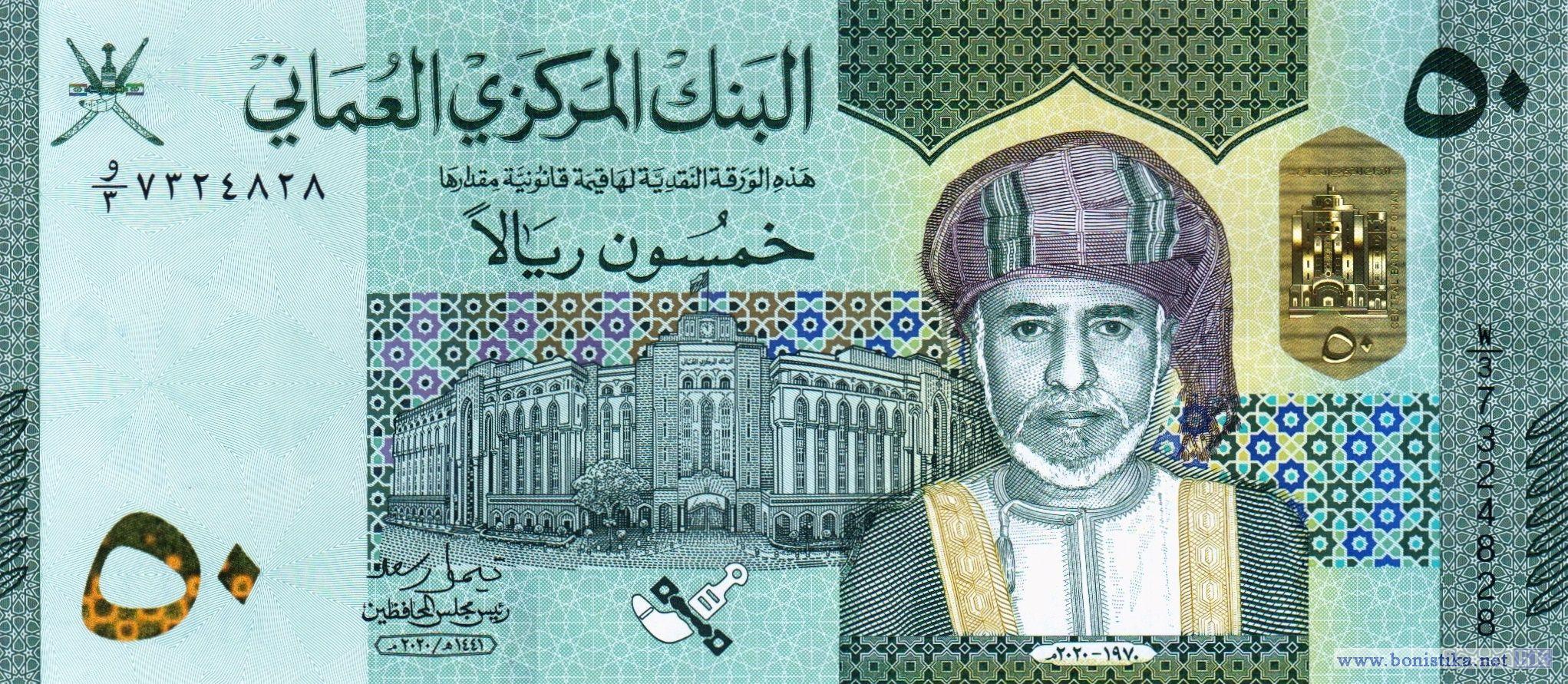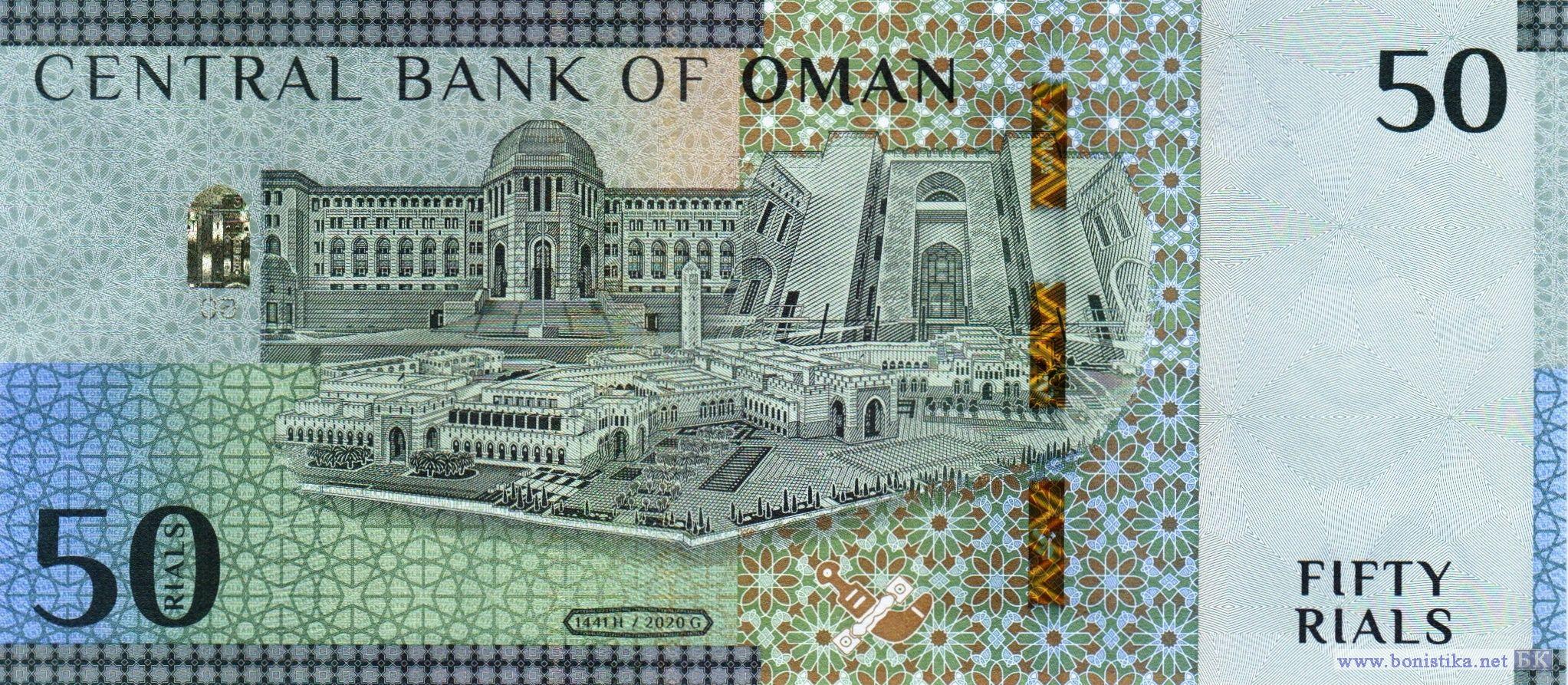 Здание Центрального банка в городе Маскат, дерево, стилизованное изображение ханджара – традиционного оманского кинжала, султан Кабус бен Саид Аль Саид. Фрагменты фасадов зданий Верховного суда и Министерства финансов в городе Маскат, новое здание парламента Меджлис ад-Даула аль-Уманийи (Государственного совета и Консультативной ассамблеи) в районе Аль-Бустан в городе Маскат, деревья, стилизованное изображение ханджара.