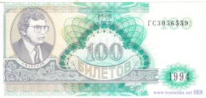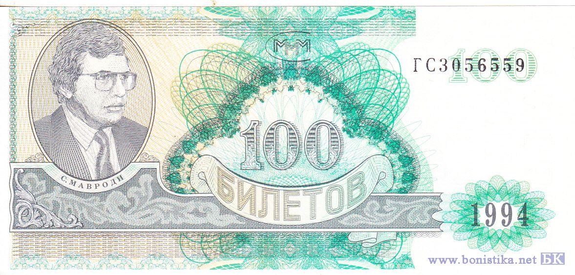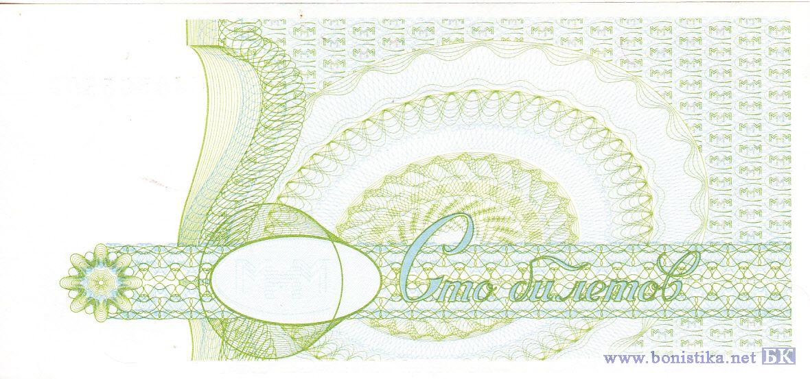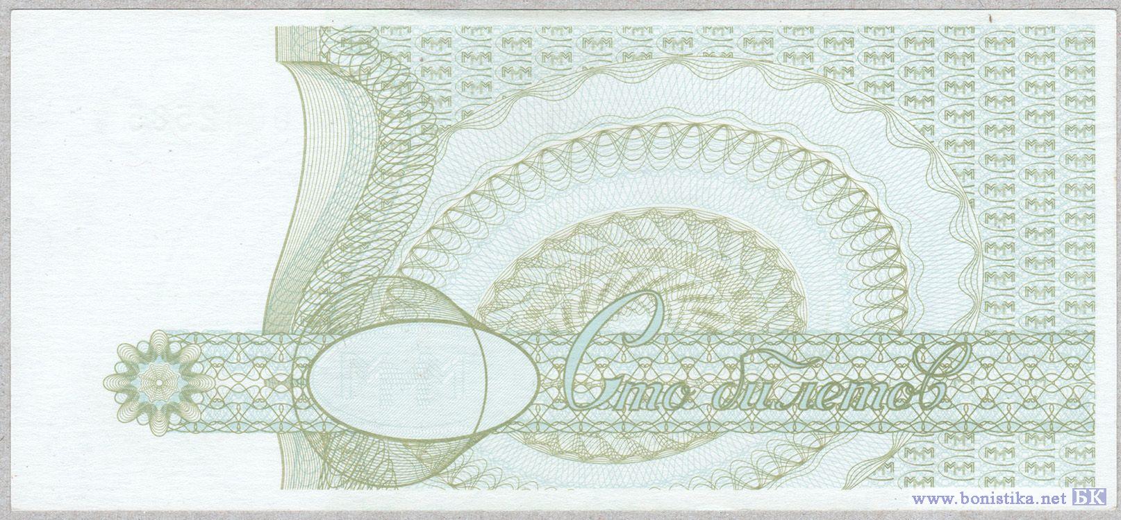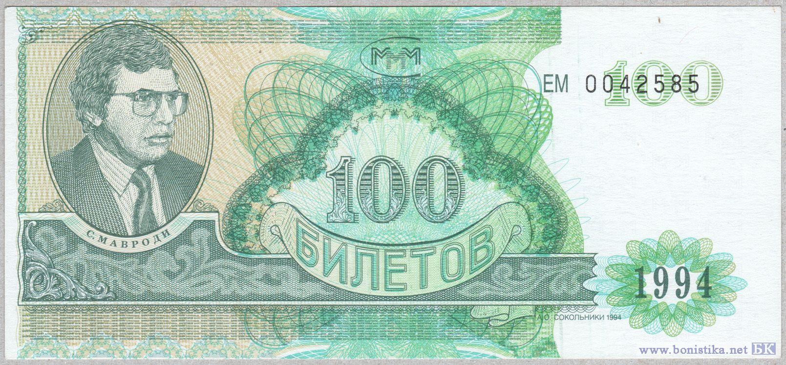 Серия номера темно-зеленая, надпечатка АО Сокольники 1994