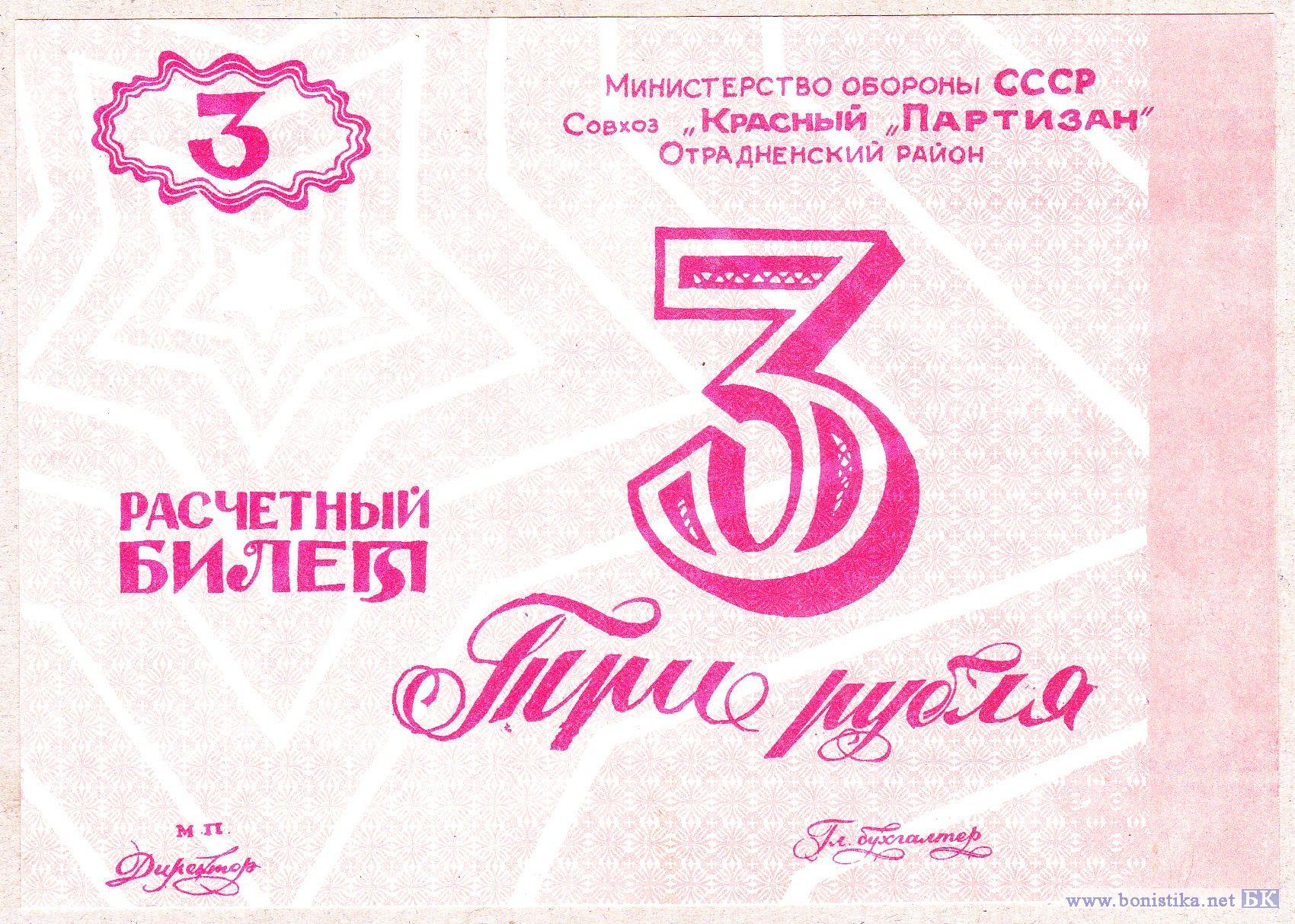 Отрадненский район, Совхоз "Красный Партизан" Министерство обороны СССР 15640р (Рябченко)