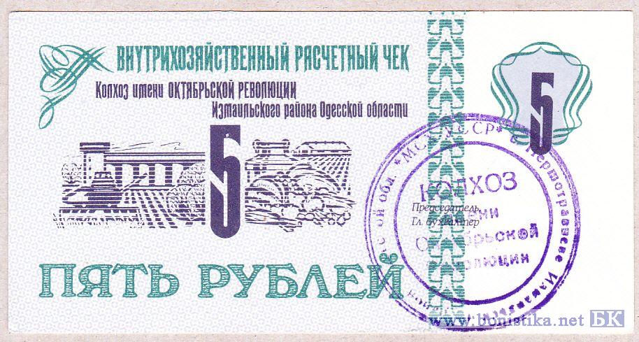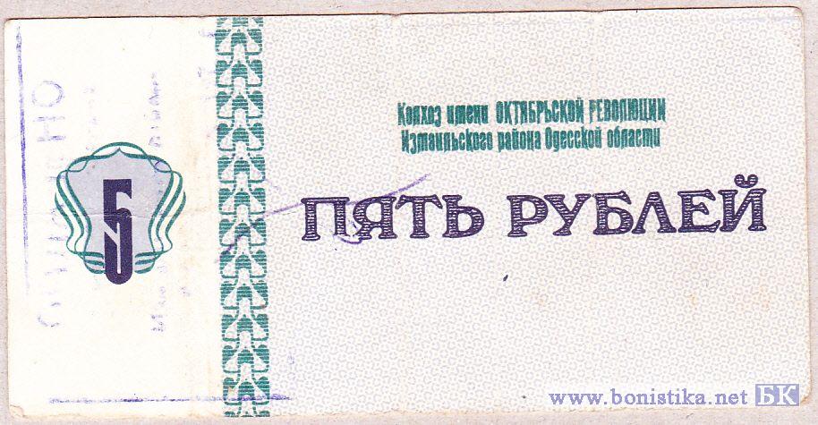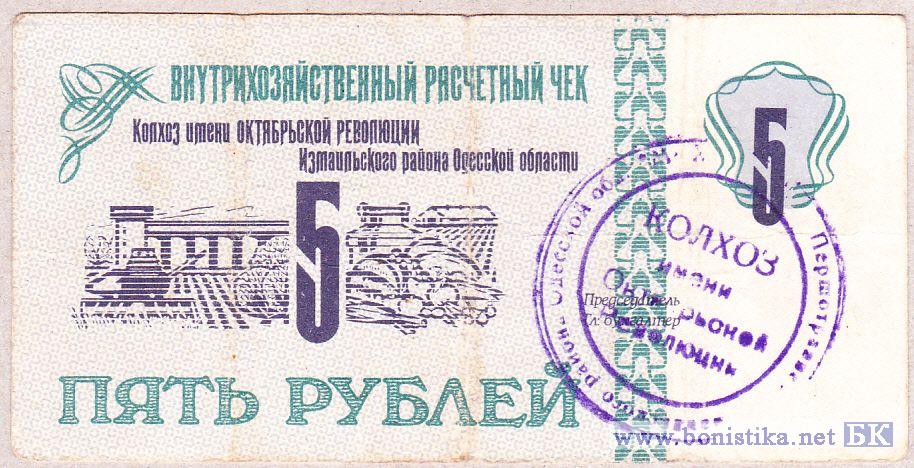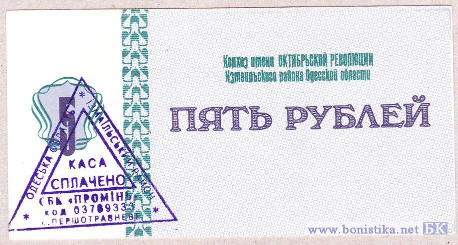 На аверсе печать колхоза им.Октябрьской Революции. На реверсе треугольная печать "Касса ОПЛАЧЕНО" СБК "Проминь" (на украинском языке).