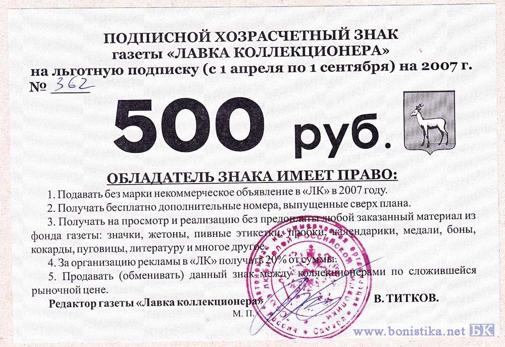 Самара. Подписной хозрасчетный знак газеты "Лавка Коллекционера"