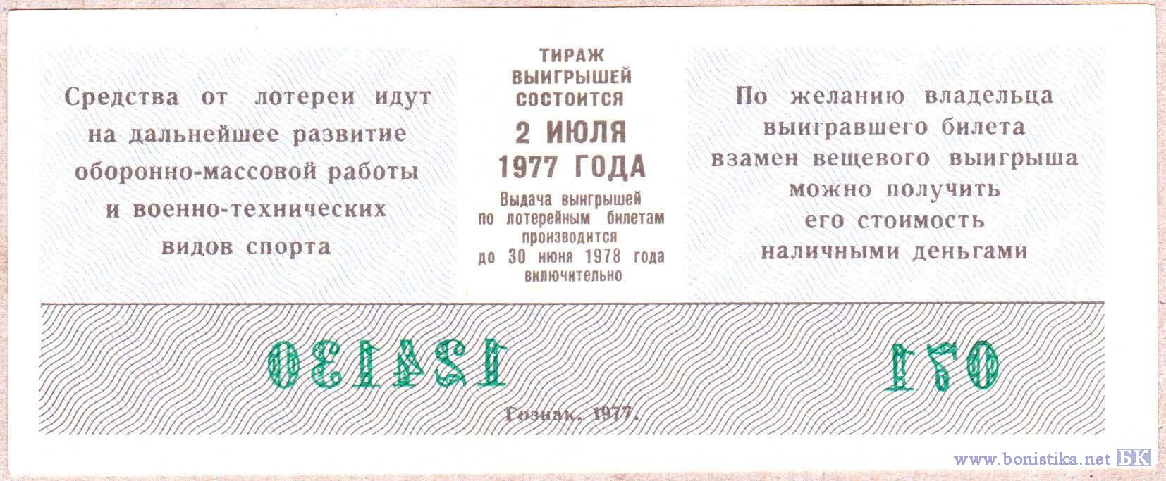 Лотерея ДОСААФ СССР (тип а), 1977