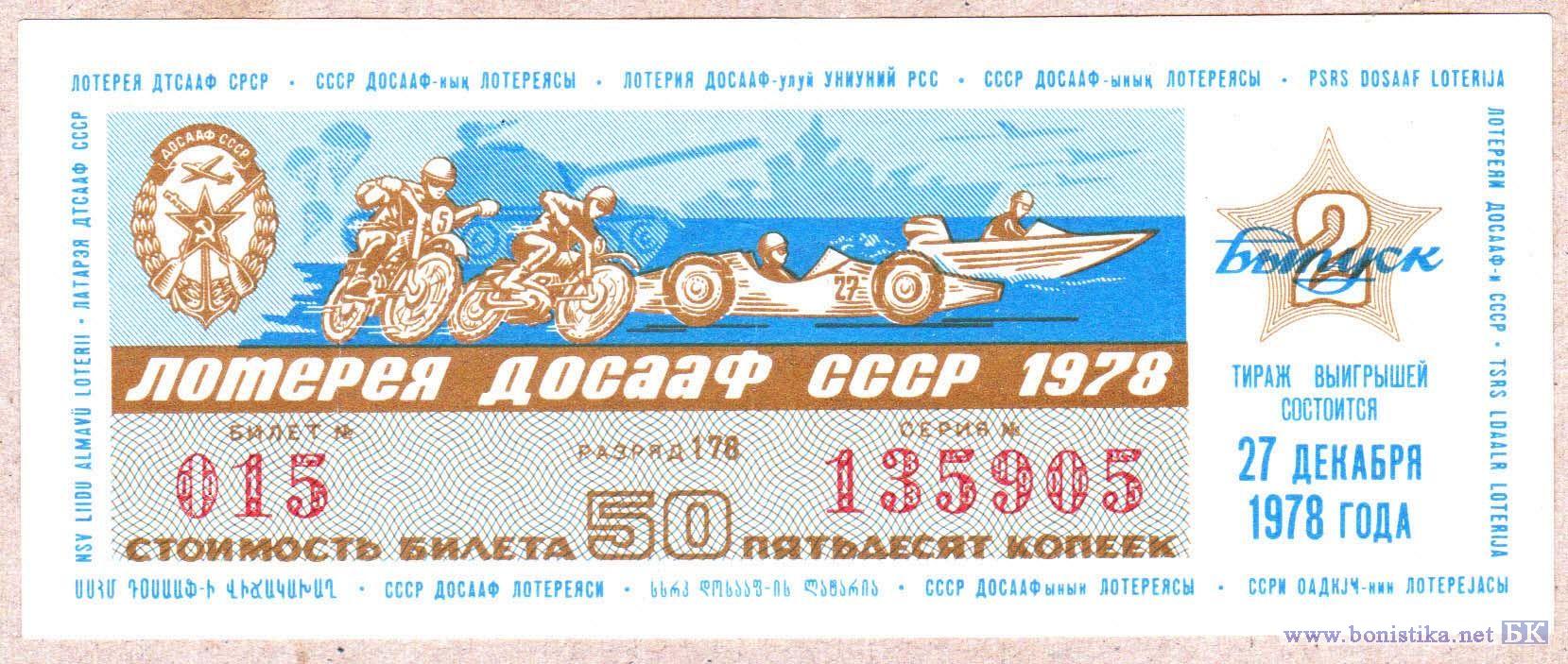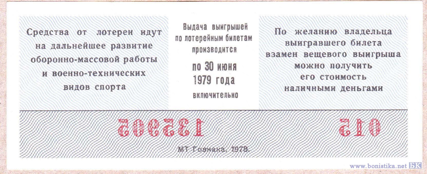 Лотерея ДОСААФ СССР (тип b), 1978