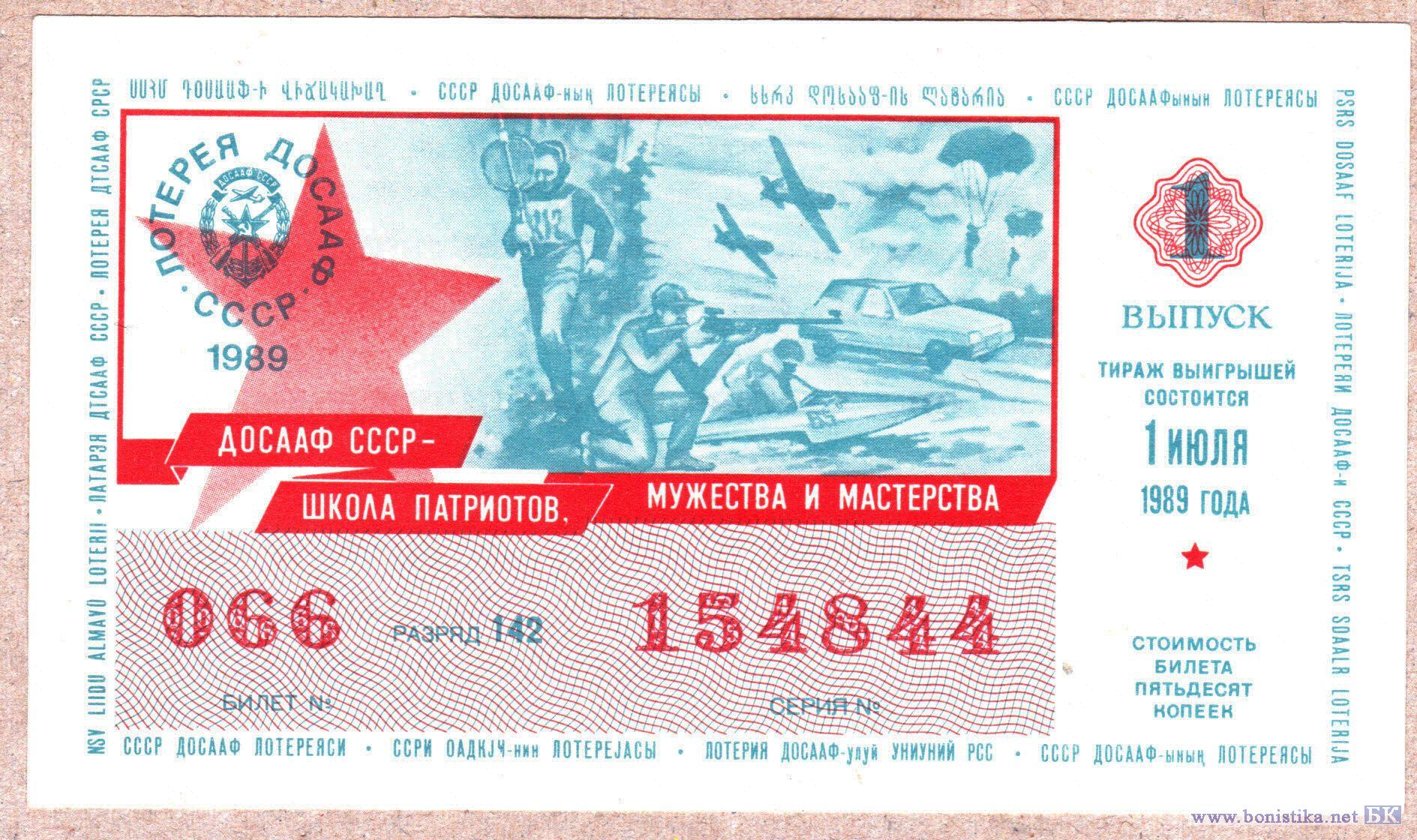 Лотерея ДОСААФ СССР (тип а), 1989