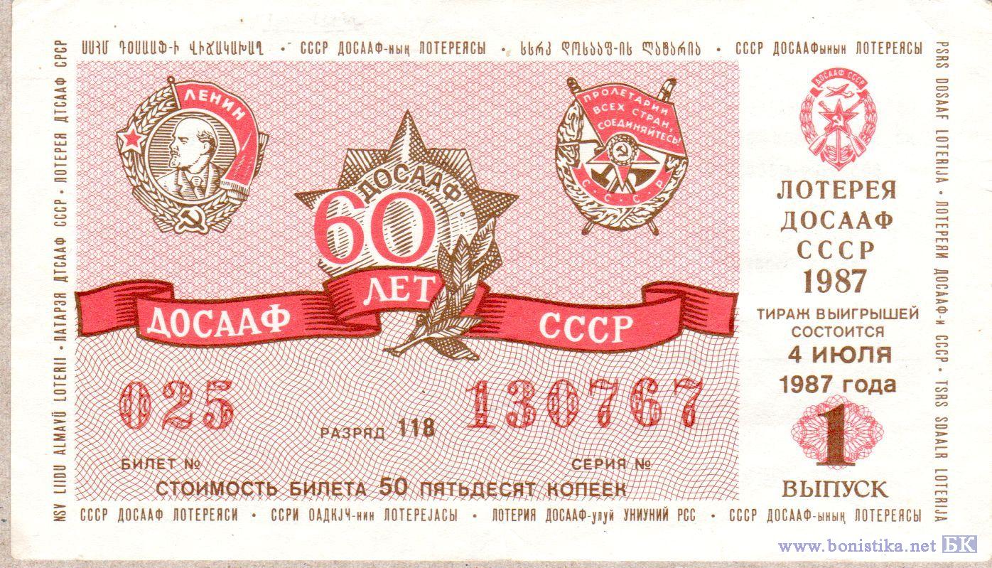 Лотерея ДОСААФ СССР (тип а), 1987