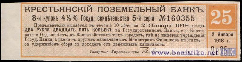 1918 г. Купоны от государственных ценных бумаг / 1918 г. Крестьянский поземельный банк
