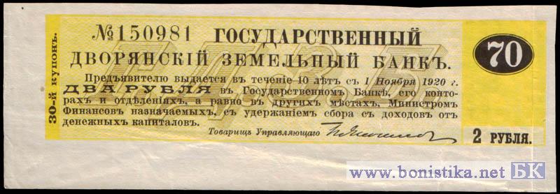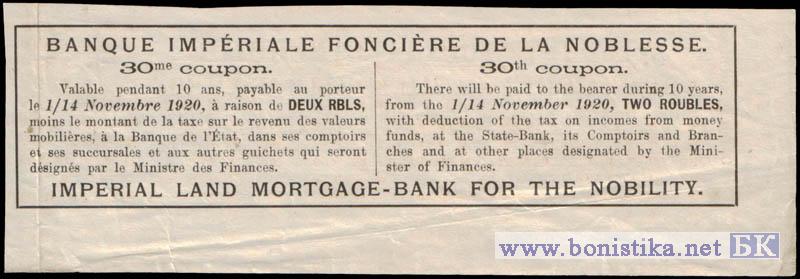 1918 г. Купоны от государственных ценных бумаг / Государственный Дворянский земельный банк