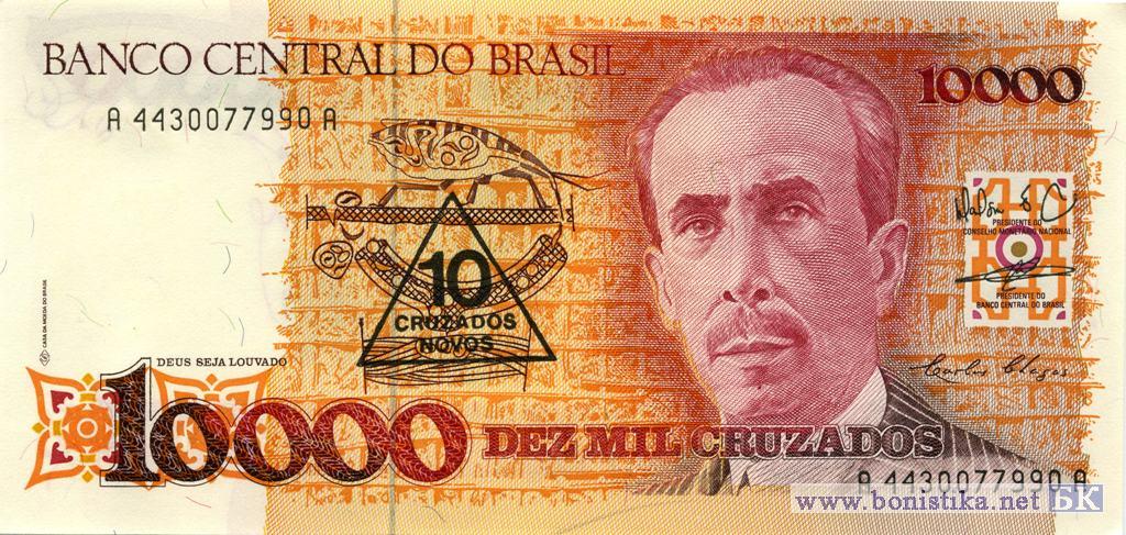 10 Cruzados Novos on 10000 Cruzados, 1990
