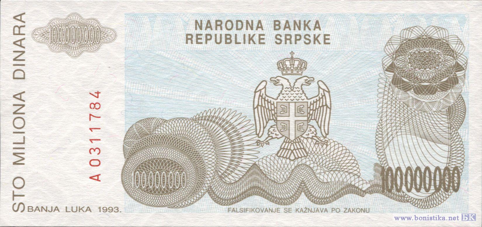 100000000 Динара (тип 2), 1993