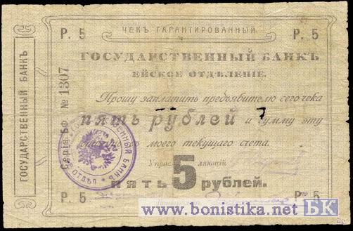 Чек гарантированный (обеспеченный)5 рублей большой формы